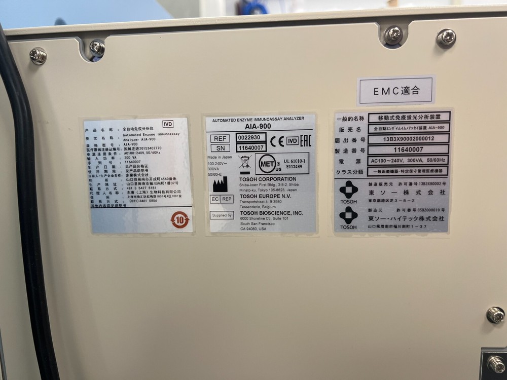 Instrument name TOSOH AIA-900 Biochemistry Analyzer, 9 tray floor model Serial number 11640007 Date of manufacture Nov-2023 Condition Good (6 months used) This is a brand new machine with light use for less than a month Date taken out of service Nov-2023 Pictures yes