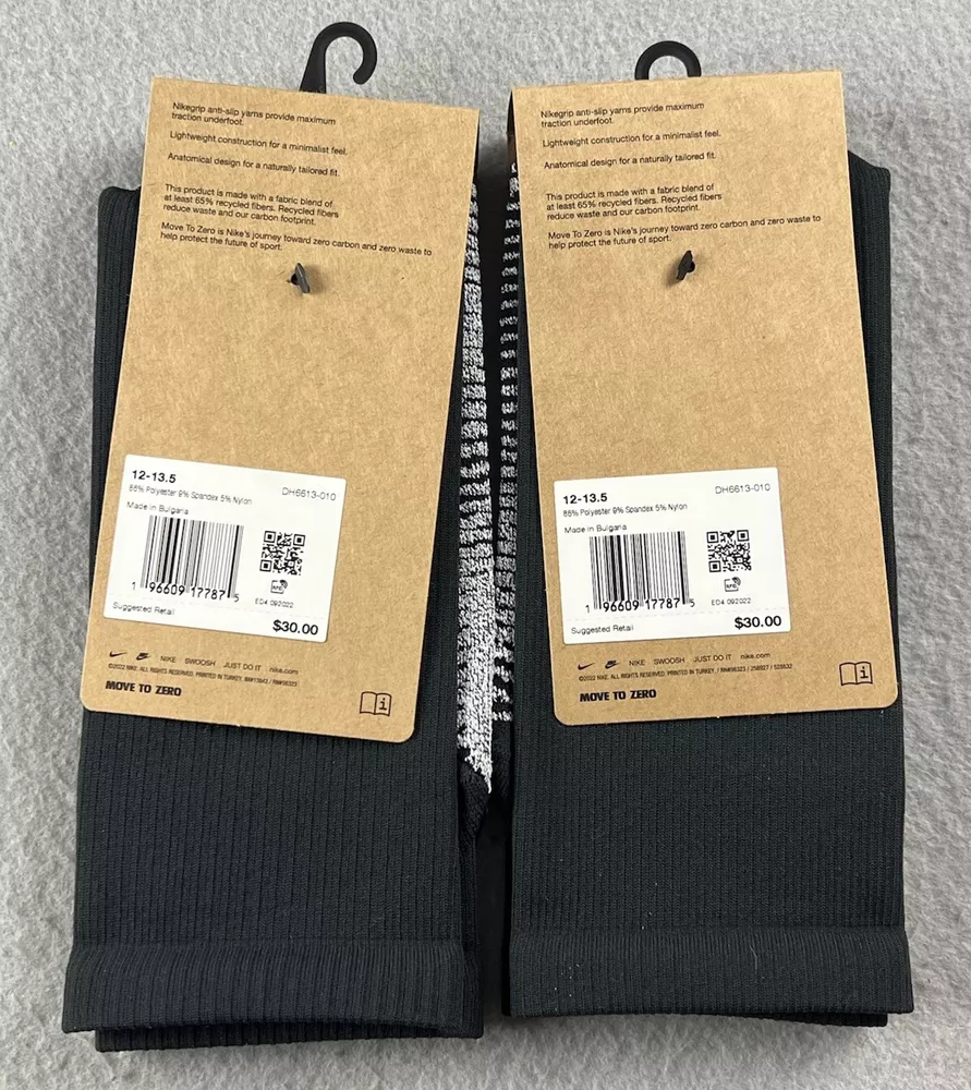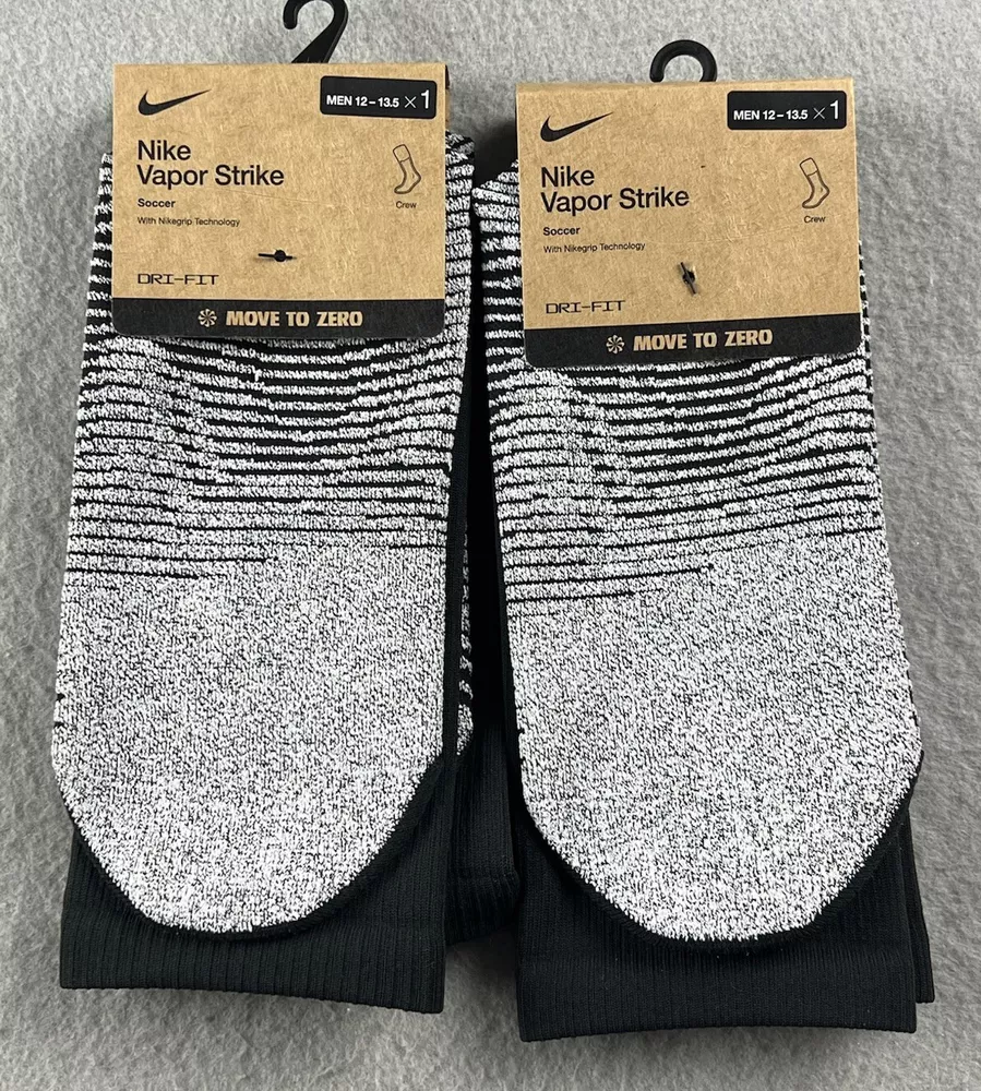 Total 2 PAIRS NIKE Vapor Strike Soccer Socks Black White Dri-Fit Men’s 12-13.5
