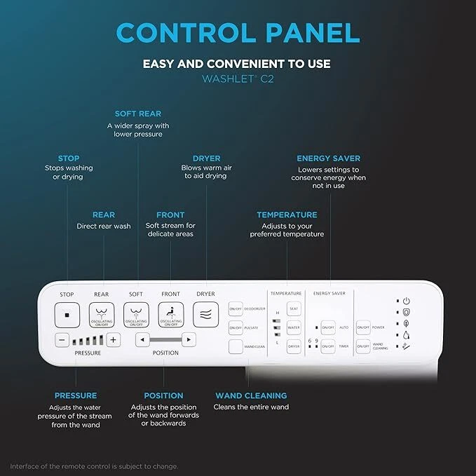 About Us: Trusted for over 100 years, TOTO is committed to improving the everyday lives of customers. Nothing shows this more than the development of the WASHLET by TOTO. Exclusively designed, engineered, and manufactured by TOTO since 1984; the WASHLET is a modern luxury and cutting-edge technology in an affordable and easy to install addition to your current toilet. Come discover how clean really feels with TOTO. Join the Clean Revolution TOTO C2 WASHLET+ Spotlight The TOTO WASHLET+ C2 Elongated Electric Bidet Toilet Seat is an electronic luxury seat that cleanses you with warm water to provide an exceptionally clean feeling. Unlike traditional toilet paper that can sometimes be rough and often ineffective, a WASHLET+ quickly provides comfortable warm water cleansing at the touch of a button. The hidden connection on WASHLET+ toilet models provides a streamlined look and gives the impression of an integrated system. T40 WASHLET+ models are compatible with T40 toilet components only A once mundane trip to the bathroom can become a spa-like experience with a WASHLET Created with quality materials and construction to ensure longevity and durability Easy-to-install, DIY, attachment enhances your bathroom with instant luxury Helps those with limited mobility and disabilities achieve self-care and regain independence LUXURY Convenient side panel remote to configure your personalized water cleansing settings. Heated seat provides the ultimate in comfort Non-slamming SoftClose seat and lid. Upgrade your bathroom instantly with cutting-edge innovation and technology. LUXURY CLEAN AWARE INTEGRITY C2 WASHLET+ Luxury Features: PREMIST Using incoming water supply, a misting of the toilet bowl is performed before each use. The slick surface creates a more hygienic environment by helping prevent waste from adhering to your toilet. Reduces cleaning time and frequency. Heated Seat The specially designed, contoured seat is heated to provide maximum comfort. Three temperature settings allows users to choose their perfect level of warmth and maintain that desired setting. Early in the morning or through the winter seasons, this heated seat will keep you warm and cozy. Air Deodorizer The automatic air deodorizer neutralizes bathroom odors by using powerful filters. Effectively cleans the air around the toilet to create a more pleasant experience. Warm Air Dryer Enjoy the ease and comfort of drying with the temperature-adjustable warm-air dryer. Reduces the need for toilet paper and creates a more hands-free experience.