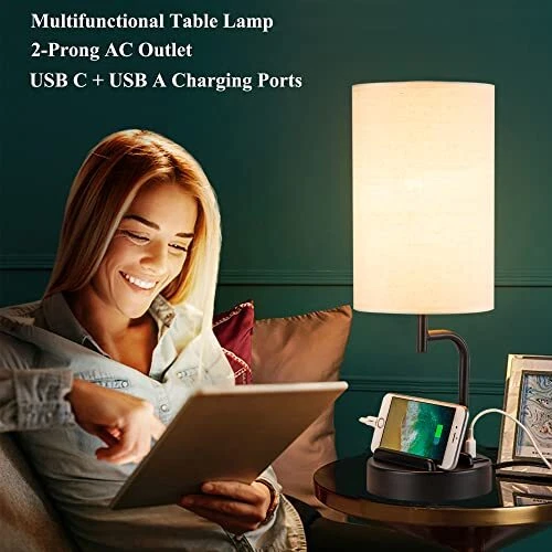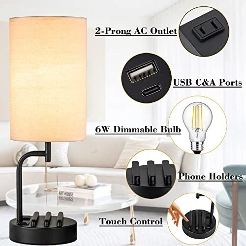 30 Days Return Policy Fast Delivery Trusted seller Touch Control USB Table Lamp, Upgraded 3-Way Dimmable Bedside Desk Lamp with USB C & A Charging Ports and AC Outlet, Nightstand Lamp for Bedroom, Dimmable 9W LED Bulb Included Product Description 【USB C & A Charging Ports & AC Outlet】 This touch bedside lamp is built-in dual USB A and type C charging ports (5V/2.1A) , which keeps you away from the trouble of finding extra power strips to charge. With AC outlet (Max.7.5A), you can charge your USB device or AC power appliances simultaneously, including phones, kindle, headset, laptop, humidifier, speaker. The charging station works fine whether the lamp is on or off. 【3-Way Dimmable Touch Control Table Lamp】 This dimmable lamp features 3-level touch control function, just simply touch on any part of the base or the pole to select the brightness mode as you need: Low, Medium, High, or Off. The intelligent touch function makes it so convenient for all ages using, no more trouble finding the switch when in the dark. Low setting is perfect for nightstand; Medium setting is suitable for daily use; High Setting is bright for reading. 【Minimalist Stylish Design with Phone Stands】With minimalist and novel design, this modern multifunctional table lamp is great for wide application. Two phone slots on the base are helpful to hold your devices and keep your desk neat while charging. It can work as a bedside table lamp for bedroom/guestroom, study desk lamp for home/office, night ambient lamp for baby nursery room etc., which gives off comfortable lighting. It is also a great gift for your family or friends. 【Dimmable 9W LED Bulb Included】This nightstand lamp comes with a high performance dimmable 9W E26 bulb to save your time in searching a compatible light bulb. It is designed with long-lasting led technology, super bright, warm white, and no flicker or dazzle on eyes, which can well protect your family eyesight; It is an equivalent of a 60W incandescent bulb that helps your family save at least 90% energy bills, which is so economical. 【Satisfaction Service & Quality Caring】This touch control table lamp has 12 months quality caring period, if you are not happy with the purchase, please kindly contact us at any time, we will make it right to you immediately. Shipping Returns Payment Shipping Shipping is FREE to all addresses other than APO/PO boxes in the lower 48 states. All our stock ships from US-based warehouses. Shipped via USPS or UPS (depending on location and package weight) Unless stated otherwise, all orders will ship within 24-72 hours of your payment being processed. Check our feedback to see the great reviews of FAST shipping we offer. Returns As our valued customer, we will do our best to make sure the product you receive arrives to you on time and as expected. If you are not satisfied with your purchase, please contact us within 30 days of receiving your order to process a return. Payment We currently accept payment via eBay managed payments only. Once payment is cleared, we will dispatch your shipment within 1-3 business days. Please refer to the "Shipping" tab for more information regarding shipping speed to your destination.
