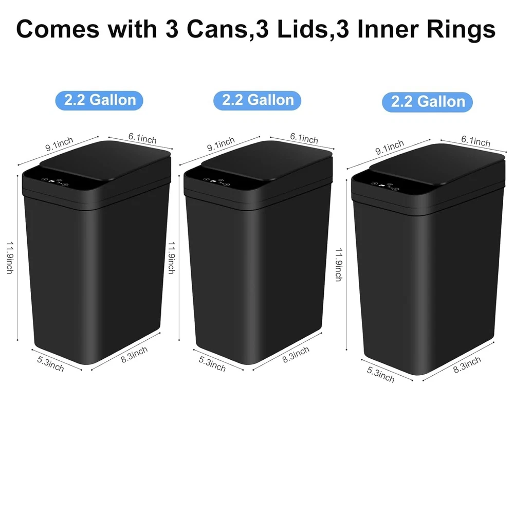 Touchless Motion Sensor Trash Can 3 Pack - Slim & Odor-Sealing 2.2 Gallon ‹ › ‹ › ‹ › ‹ › ‹ › ‹ › ‹ › ‹ › ‹ › Touchless Motion Sensor Trash Can - 3 Pack -Slim & Odor-Sealing Design -2.2 Gallon Capacity -Perfect for Small Spaces such as Bathrooms Product Features: Compact Size: Each trash can measures 9.3''L x 6''W x 12.6''H, making them ideal for narrow spaces. Space-Saving: Designed to fit seamlessly in limited spaces, these ultra-thin cans optimize your home environment without sacrificing style. Advanced Motion Sensor: Activate the touchless mechanism by simply placing your hands or knees within 6-10 inches; the can responds within 0.3 seconds. Odor Sealing: Engineered to effectively trap odors, ensuring a fresh atmosphere in your home. Durability: High-quality materials ensure that the trash can withstands the daily wear of wet and splashing environments. Silent Operation: Air damping technology allows for quiet opening and closing, perfect for night-time use. Benefits: Effortless operation without the need to touch the lid. Efficiently controls odor spread, leaving your home smelling clean. Elegant and modern design complements any room, whether in a bathroom, living room, or bedroom. Battery-powered for convenient placement anywhere with no electrical outlet required. Is great for homes with pets or children, minimizing messes and maximizing convenience. Why Choose Our Touchless Motion Sensor Trash Can? Transform your waste disposal experience with our Touchless Motion Sensor Trash Can. Its sleek design, combined with intelligent sensing technology, provides a functional and stylish solution for small spaces. Perfect for bathrooms, bedrooms, or tight corners, our trash can features an airtight seal to combat unpleasant odors, ensuring that your home remains fresh and inviting. Plus, with a silent opening and closing mechanism, you can dispose of waste quietly—even at night. Don't let trash bins disrupt your elegant environment; choose our touchless technology for your waste disposal needs. Order your 3-pack today and elevate your home to a new level of sophistication and convenience! Shipping Free & Fast Shipping - We offer free shipping to most of the USA with a normal delivery time of 3-7 days. However, due to the current situation, additional delivery time (up to 3 weeks) may be required for some items. Alternative Carriers - We may use alternative carriers (e.g. USPS, FedEx, UPS, etc.) to ensure your package arrives safely and on time. Due to the use of multiple carriers, we are unable to provide a tracking number automatically. Handling Time - Orders are processed and shipped within 1-2 business days of receiving cleared payment. Shipping Restrictions - Shipping to Alaska, Hawaii, Puerto Rico, Guam, and other US territories may incur shipping charges or delivery restrictions. Please contact us before ordering, or your order can be refunded/cancelled. State Restrictions - There may be restrictions based on your state of purchase. For example, certain items may not be shipped to California due to state regulations. Contact for Tracking Updates - If you require tracking updates or have any concerns about the delivery of your order, please feel free to contact us, and we will be happy to assist you. Return 30-Day Hassle-Free Returns - We want you to be completely satisfied with your purchase. If you are not, you can return the item within 30 days of receiving it for a full refund or exchange. Easy Return Process - To start a return, simply contact us and we will provide you with a prepaid return shipping label and detailed instructions. Restocking Fee - There are no restocking fees for returns. However, the buyer is responsible for return shipping costs if the return is not due to a seller's error. Refund Processing Time - Refunds will be processed within 5 business days of receiving the returned item in its original condition. Payment We accept all major credit cards, PayPal, and Apple Pay for your convenience. Your payment information is secure and encrypted to ensure a safe and seamless transaction. Please complete your payment within 3 days of purchase to avoid any delays in shipping. Feedback Your feedback is extremely important to us. We strive to provide the best products and customer service possible. If you are satisfied with your purchase, please take a moment to leave us a positive review. If you have any concerns or issues with your order, please contact us before leaving negative feedback. We are committed to resolving any problems and ensuring your satisfaction. Contact Us If you have any questions or concerns, please feel free to reach out to our customer support team. You can contact us through the eBay messaging system. We are available Monday to Friday, 9:00 am to 5:00 pm EST, and we will do our best to respond to your inquiry within 24 hours. Thank you for supporting our small family business! UPC: Not Set Unit Quantity: 2.2 Room: Bathroom,Bedroom,Kitchen,Living Room,Office Material: Plastic Features: Removable Lid,Motion Sensor,Touchless,Leakproof,Compact,Odor Seal Suitable For: Indoor Brand: Unbranded Item Height: Automatic Trash Can Item Length: Automatic Trash Can Item Width: Automatic Trash Can Type: Sensor Trash Can Color: Black Capacity: 2.2 gal Size: Small Number of Compartments: 1 Model: Not Set Item Weight: Less Than 2 lb MPN: Not Set Shape: Rectangular Style: Modern Pattern: Not Set Country/Region of Manufacture: Not Set Finish: Polished Unit Type: gal Personalize: Not Set