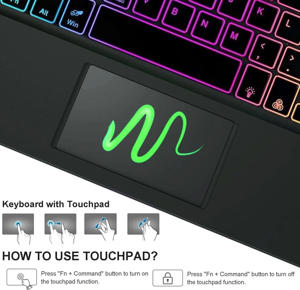 Touchpad Keyboard Case for Samsung Galaxy Tab A9 Plus 11 Inch Product Details Brand: Nanhent Color: Tab A9 Plus Compatible Devices: Samsung Galaxy Tab A9 Plus 11 Inch 2023 Material: Acrylonitrile Butadiene Styrene, Polycarbonate Special Feature: Backlit, Trackpad, Rechargeable 【Precise Hole Position, Honeycomb Design】The mold for A9+ case is made based on the real A9+ tablet, and the precise cutouts can make full use of all functions, and provide perfect protection and convenience for daily use. The soft TPU inner shell adopts a honeycomb design, which is beneficial to the heat dissipation of the tablet and improves the performance of the tablet. 【Rainbow Backlight】Suitable for Samsung tablet A9+ RGB rainbow backlight keyboard, 7 adjustable backlight colors, breathing light backlight mode can be automatically switched. The backlit keyboard can be used in the dark, providing a comfortable typing experience. 【Touchpad Keyboard + Multi Touch】The keyboard has a trackpad that supports multi-finger gesture functions.A single finger can slide to move the cursor,click to select a target,etc.Use two fingers to slide to switch pages,open/reduce images,etc.Use three fingers to slide down to take a screenshot,slide up to return to the main interface,etc 【Turn Your Tablet into A Laptop】Keyboard can support Android, iOS Systems, Windows Systems. Real hard laptop style keyboard with high end ABS material. Not cheap silicone keyboard as other cases in market. A spring mechanism underneath each key ensures a tactile response with every stroke, helping you to type faster and with less error than on a touchscreen. Nanhent 2024 Introduces this stunningly attractive and unique case. 7 Colors Rainbow Backlights Touchpad Keyboard Case for Samsung Galaxy Tab A9 Plus 11 Inch. Tablet Model: SM-X210/SM-X216/SM-X218, 2023 Release. How to connect the keyboard with the tablet? 1. Dial ON/OFF button on right direction for opening keyboard, press "FN+C" for 2 seconds into wireless matching condition.(The Bluetooth light blinks slowly) 2. Open Bluetooth on device, search keyboard name: [Keyboard] for matching device to keyboard. 3. Click the "Keyboard" to connect, finish. How to adjusts the colour of the backlight? 1.Click "Bulb" Key to toggle between breathing light and fixed light modes. 2.Fixed light modes, click "RGB key" to switch between 7 color schemes. Specification: Charging voltage: 5V Bluetooth version: Bluetooth 3.0 Transmission distance: up to 10 m Capacity of battery: 450 mAH Charging time: 2-3 hours Working time: 90 hours without backlight Working time: 10 hours with backlight Standby time: 180 days What's in the box? Tablet Case * 1 Rainbow Backlight Touchpad Keyboard * 1 USB-C Charging Cable * 1 Product Manual * 1