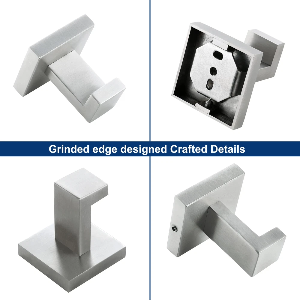 [Great Performance to Anti Rust]: The towel hooks for bathroom is made of metal SUS304 type high-quality stainless steel, added with 18/10 chromium/nickel content, corrosion-resistant, heavy-duty, and never rust. 4 protective layers are added to SUS304 stainless steel to make it more sturdy, firmer, more rust-proof and smooth, without sharp edges.Suitable for the humid environment such as bathroom and kitchen. [Brushed Nickel Finish]: Our Brushed Nickel towel hook is hand brushed stainless steel finish and compatible with your modern bathroom design and build to resist corrosion, scratches and tarnishing.Stylish wall hooks, beautiful and fashionable. [Super Easy to install & Remove]: The coat hooks wall mounted are very easy to install and remove and come with all hardware screw accessories. With detailed installation guide, the bathroom towel holder is easy enough to be installed by yourself without professional installer.All accessories included as well as one instruction to refer to. The job can be done within a few minutes. [Multi-applications & Multi-Functions]: Our bath towel hooks is ideal for hanging towel, coat, hat, bag, belt, key, scarf, suitable for bathroom, kitchen, bedroom, restroom, garage, laundry room, hotel, RVs, campers, boats and cabinet.The towel hanger for bathroom can be install to different surfaces such as marble, ceramic tile, wood, etc. [You Will Get]: 4 pcs bathroom robe hooks and 1set mounting accessories.If you have any problems about the products & installation,please contact us freely on Amazon.