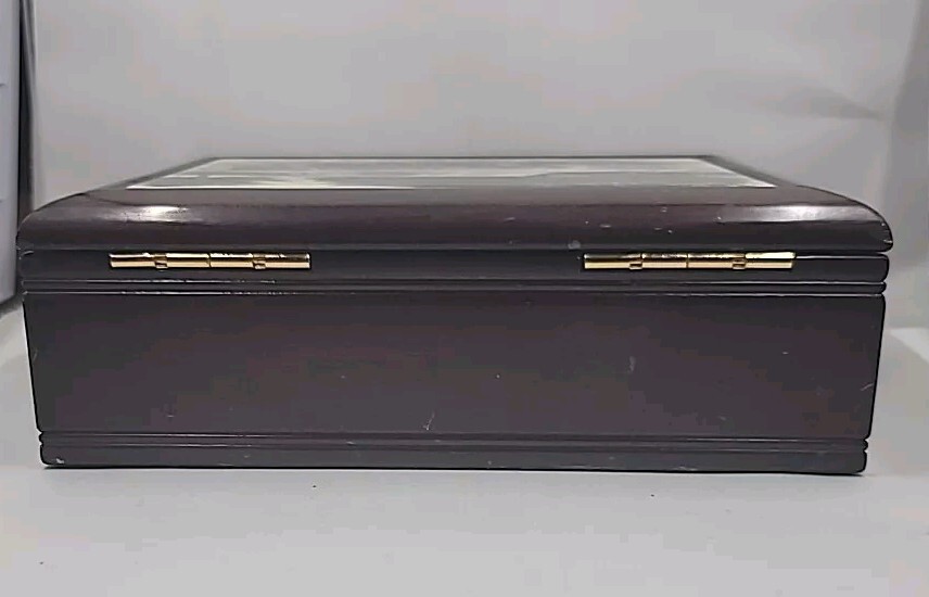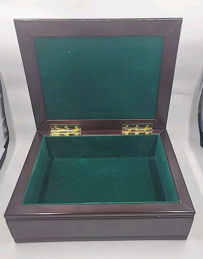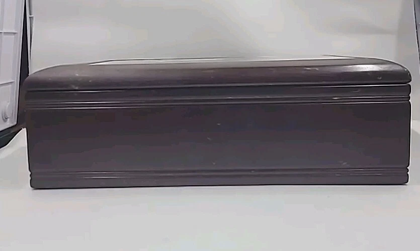 This wooden jewelry storage box is a must-have for any Toyota collector. Celebrating 40 years of customer satisfaction, this original piece from 1957 is a rare find. The box is shaped like a rectangular gem and features a hinged closure. The box is perfect for storing small items and comes with a boxed closure. The brown color and wooden material make it a great addition to any decor. This collectible item is a great way to show your love for Toyota and comes with a timeless message of customer satisfaction. This is in nice condition. It measures approximately 9" wide x 7" deep x 3-1/4" high. Look over the photos and ask any questions you may have. Lot 9.26.24V2.4