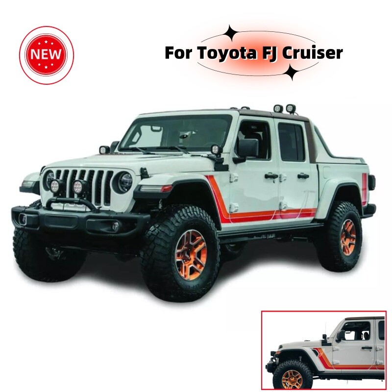 These racing stripe decals totally transformed my FJ Cruiser! The vinyl quality is thick and durable, sticking perfectly without bubbles. Installation was super easy, and the custom color option is a nice touch. Makes my ride look way more aggressive—love the sporty vibe! Highly recommend for anyone wanting to upgrade their truck’s style.