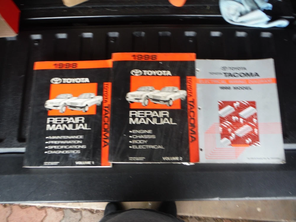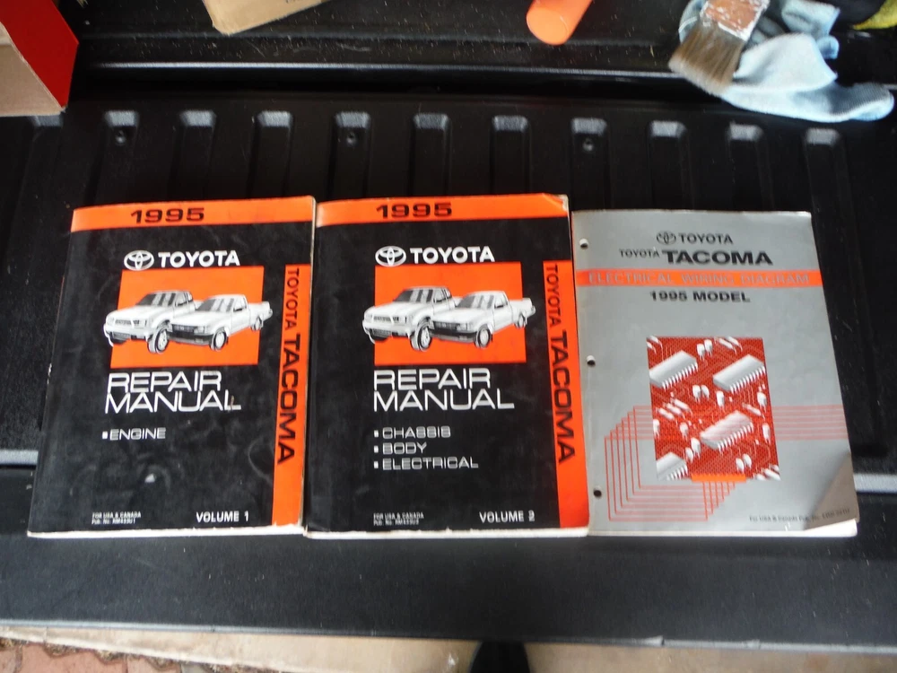 Get your hands on these factory Toyota service repair manuals for your Tacoma, Tundra, or Land Cruiser. These manuals cover everything you need to know about your Toyota, from maintenance to repairs. With publication dating back to 1988, these manuals are a valuable resource for any Toyota owner or mechanic. Each manual is authored by Toyota and includes detailed information on every aspect of your vehicle. This is the perfect addition to any Toyota owner's collection. Shop with confidence on eBay Motors, knowing that you are getting a high-quality, comprehensive manual to keep your Toyota running smoothly. THESE ARE AS IS, SOME OLDER THAN 20 YEARS OLD!! DECENT AND USEABLE NOT PERFECT.