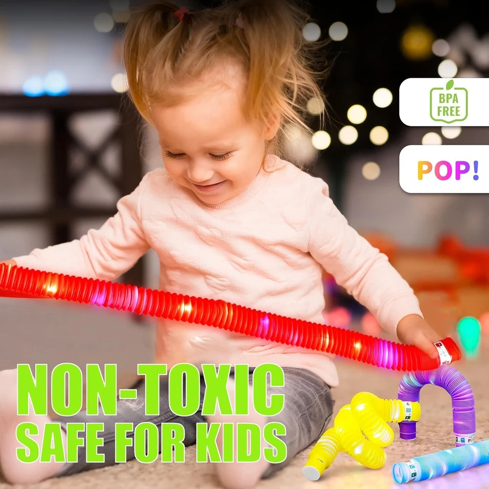 Toys for girls Bracelets for Children 3 4 5 6 7 8 years old Cool Gift for Christ Description ๐จ๐ป๐ถ๐พ๐๐ฒ ๐๐ถ๐ด๐ต๐ ๐จ๐ฝ ๐ฃ๐ผ๐ฝ ๐ง๐๐ฏ๐ฒ๐: UrChoice Light Up Pop Tubes comes in an assortment of 8 vibrant colors(red, orange, yellow, green, blue, purple, pink, deep blue). offering an array of choices for your glow parties, camping games, and movie night supplies needs. ๐๐๐ป ๐ฃ๐ฎ๐ฟ๐๐ ๐๐ฎ๐๐ผ๐ฟ๐: Ideal as Halloween party supplies, bag stuffers for birthday parties, wedding parties,and dance parties, these tubes add an extra glow to your events, ensuring they are memorable. ๐ฆ๐ฎ๐๐ถ๐๐ณ๐๐ถ๐ป๐ด ๐ฃ๐ผ๐ฝ๐ฝ๐ถ๐ป๐ด ๐ฆ๐ผ๐๐ป๐ฑ๐: The Pop Tubes create a pleasing pop sound when pulling, providing stress relief and sensory stimulation, making them a captivating addition to your party accessories or neon parties. ๐๐ป๐๐ฒ๐ฟ๐ฎ๐ฐ๐๐ถ๐๐ฒ ๐ฃ๐ผ๐ฝ ๐ง๐๐ฏ๐ฒ ๐๐๐ป: Twist, retract or stretch these Pop Tubes for the ultimate fidget fun. They not only offer a unique sound production but guarantee laughter and enjoyment for both children and adults. ๐๐ผ๐ป๐ด-๐น๐ฎ๐๐๐ถ๐ป๐ด ๐๐น๐ผ๐: These superior quality LED pop tubes ensure a long-lasting glow. Make your nighttime activities more exciting and memorable with these glowing pop tubes. ๐ฅ๐ถ๐๐ธ-๐๐ฟ๐ฒ๐ฒ ๐ฃ๐๐ฟ๐ฐ๐ต๐ฎ๐๐ฒ: Your satisfaction is our top priority. If you're not completely happy with your purchase of these LED pop tubes, feel free to contact us with your order ID. feel free to get in touch with our dedicated customer service team. They are available to assist you and address any concerns you might have.