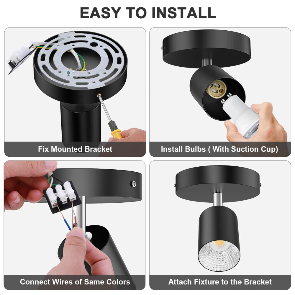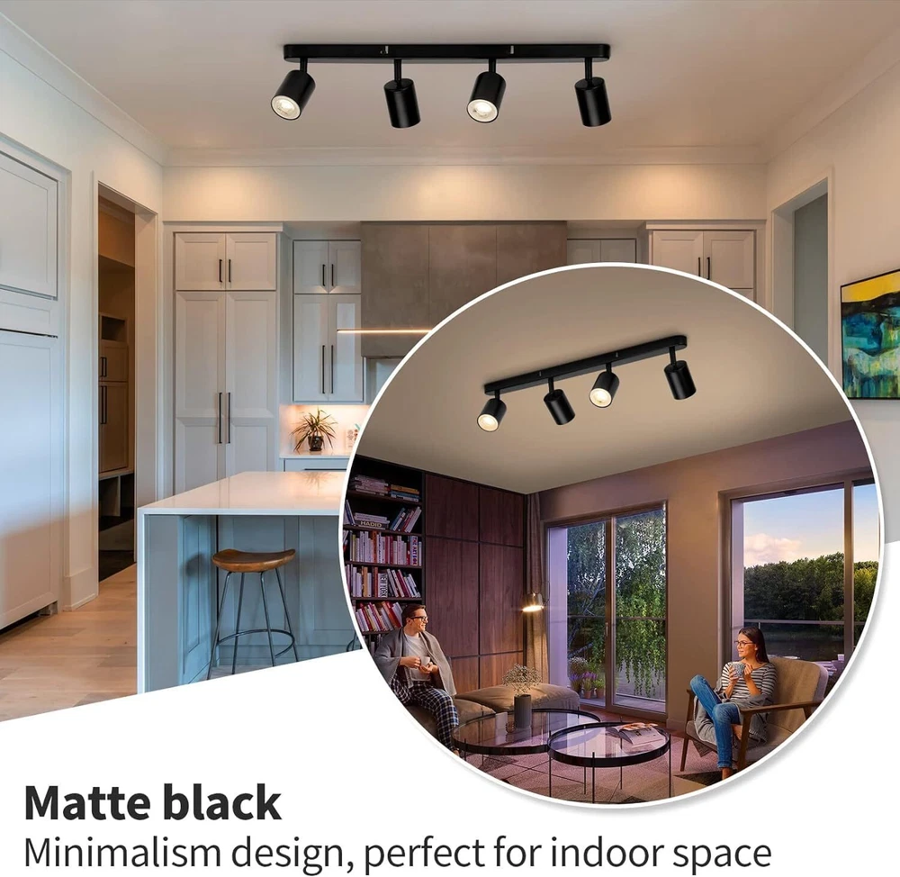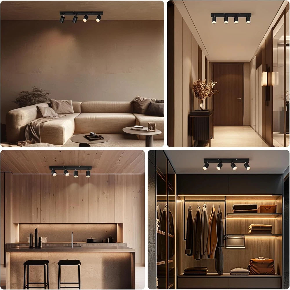 LED ceiling spotlight 4 b ulbs, ceiling spotlight LED swivel GU10(NO GU10 Bulb) 1.It can not only be mounted on the wall or ceiling, but can also be flexibly adjusted. 2.With its 4 spots, it illuminates the entire room perfectly. Optimal illumination by adjusting and rotating the lamp head so that the light reaches the ideal position. GU10 socket, bulbs no t included Thanks to the easily accessible GU10 sockets, because everyone has different requirements for the color temperature and wattage of the bulb. Therefore, we have not equipped the spotlight with a light source. This way you can choose the right light source according to your needs. It is recommended to use LED bulbs. Specifications: Type: 1/2/ 3/ 4 flames Socket: GU10(NO GU10 Bulb) Color: white/dark gray/matt black Material: aluminum; iron Voltage: AC100-240V Maximum power of the lamp: Max. 50W (per socket) Package includes: Ceiling spotlight * 1 Installation accessories * 1 Installation manual * 1 Tip: Bulbs not included