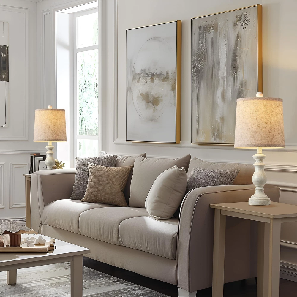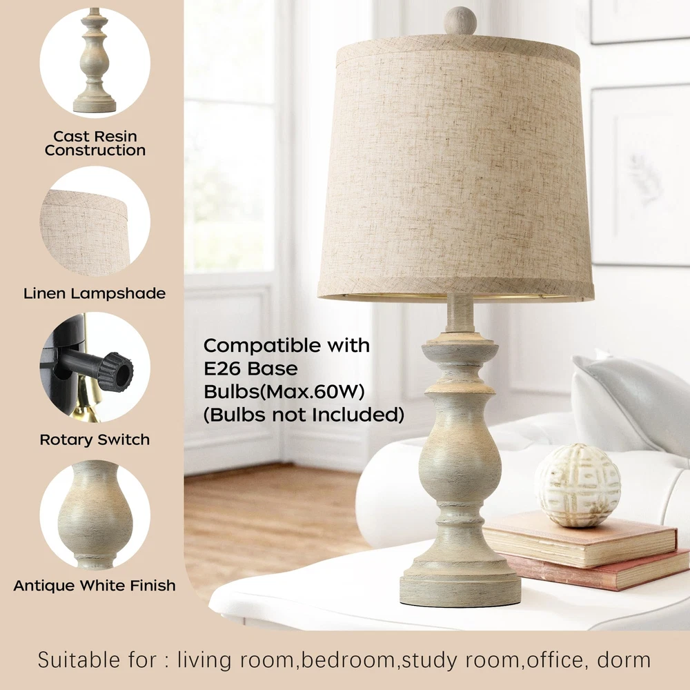 and elegant design: designed in a rustic farmhouse style, each table lamp features an antique finish for a more elaborate design. Beige tapered drum shades on top are the perfect finishing touch to these beautifully old-fashioned bedside lamps. It modern, contemporary, art decor, vintage, mid-century modern, and other decor schemes Visually pleasing: small lamp is designed for eye comfort. The shade of our bedside lamp is made of linen to ensure even and soft light distribution, protecting your eyes and creating a warm and cozy atmosphere in your home. Suitable for living rooms and bedrooms Choice for safety: we attach great importance to the quality of our table lamps during the production process. Made of reliable materials, this lamp is made to last, maintaining its gorgeous appearance for years. Each lamp uses a maximum 60-watt bulb (not included) Ideal gift option: enhance your home decor with our exquisite table lamps. The modern design adds character and warmth to your house, creating a cozy ambiance. Place these beautiful lamps on a nightstand or console table, they will effortlessly enhance the overall aesthetic. Perfect gift for family or friends on birthdays, Christmas, New Year and other celebration days Easy to assemble: assembling our table lamp sets is super easy. No tools are needed, take a few minutes to install all the parts together. The table lamps are constructed of reliable material which ensures long-lasting use. We stand after our products, If you have any questions about our products, please feel free to us. We will help within 24 hours