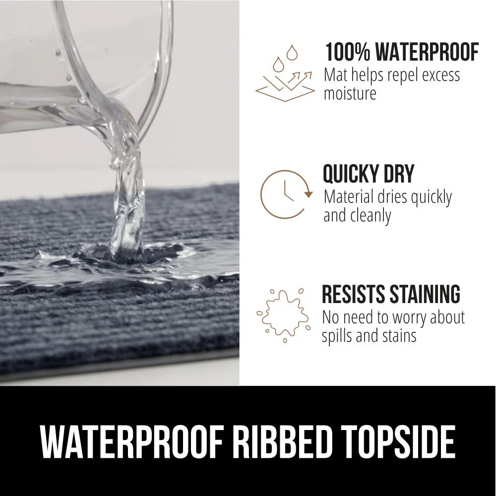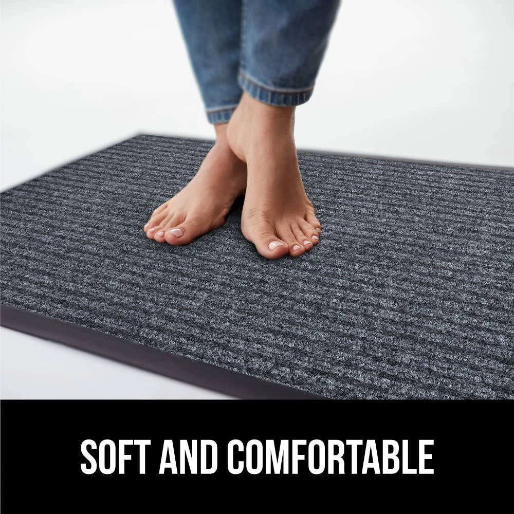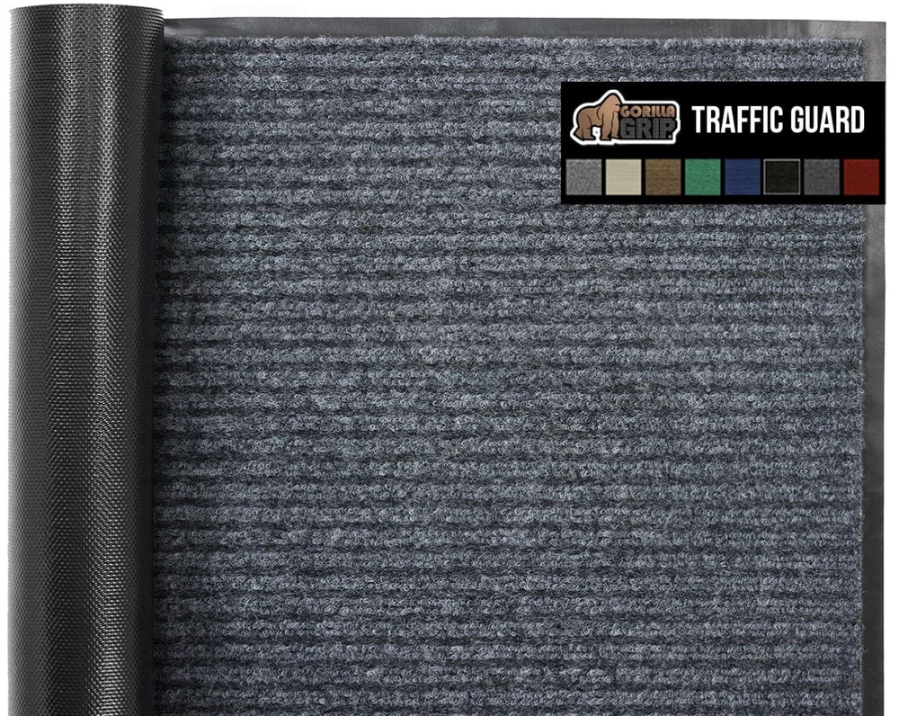 BUILT TOUGH FOR HIGH TRAFFIC: the Traffic Guard doormat is ultra strong and built tough to withstand high foot traffic; constructed with a high quality textured rubber backing and raised fabric topside to help scrape off dirt and debris; thick and plush topside is gentle on bare feet, but durable for boots WATERPROOF RIBBED TOPSIDE: ultra absorbent and 100% waterproof, the mat's surface helps to capture excess water and moisture; plus, premium fabric dries quickly and resists staining and fading for long lasting use DEEP GROOVES CAPTURE MUD AND MOISTURE: designed with a raised ribbed surface to help capture mud, dirt, moisture and debris deep within its grooves; perfect for those rainy and muddy days LOW PROFILE EASILY CLEARS DOORS: mat's low profile design measuring .25 inches thick allows nearly any low clearing door to pass over with ease INDOOR AND OUTDOOR USE: a great option for both indoors or out; mat's are extremely durable and can be used in a variety of locations at home or at work such as entryways, porches, patios, mudrooms, garages, and more; measuring 60 by 36 inches for a perfect fit