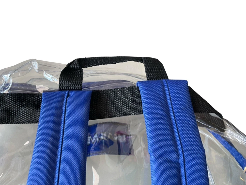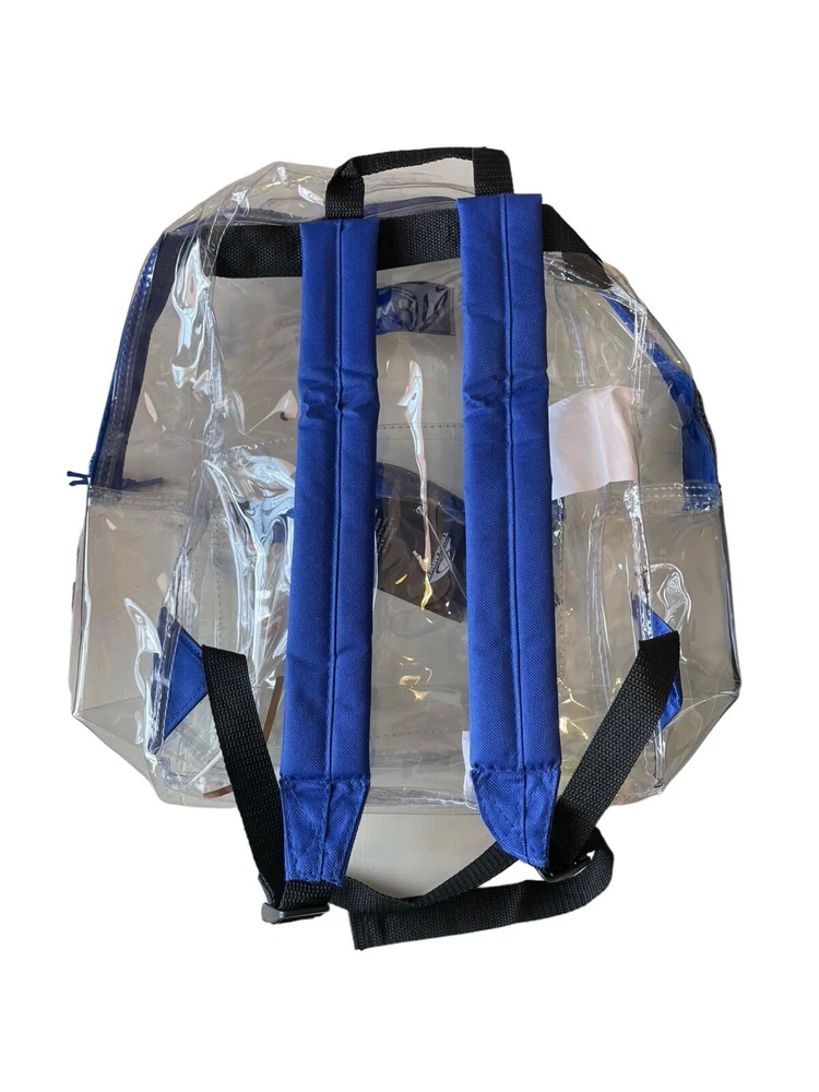 HomeTrailmaker Back Pack Clear Plastic Clear Blue Trim For School, Work, Travel NWT