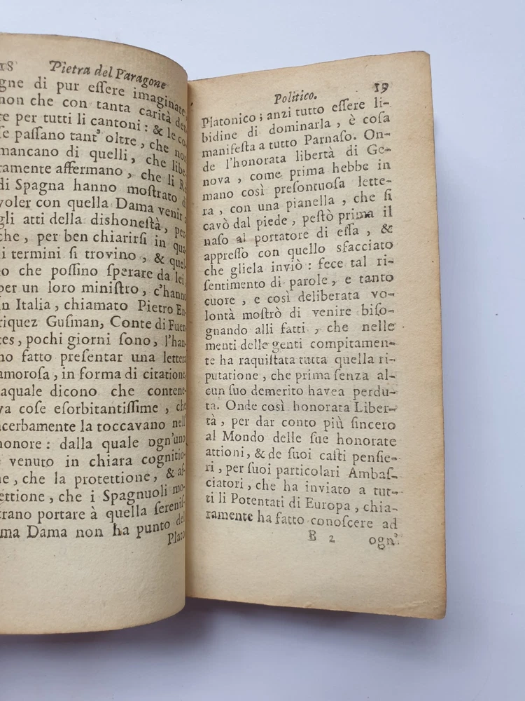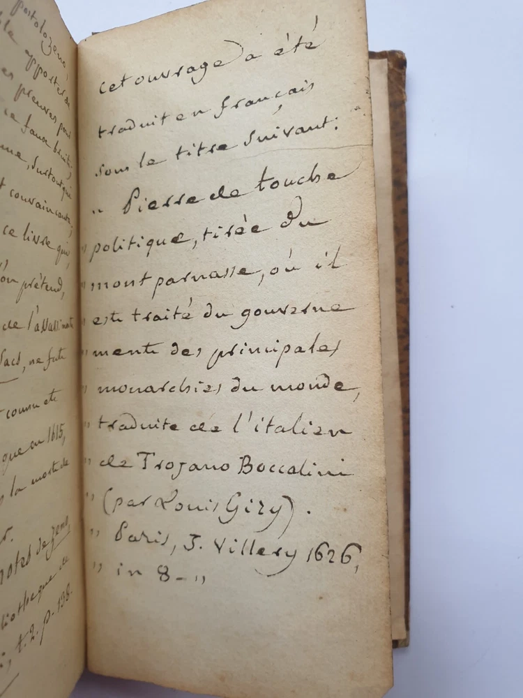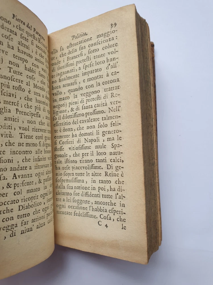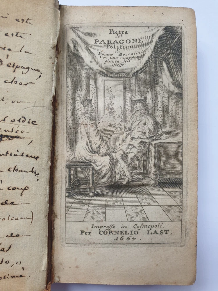 Title: PIETRA DEL PARAGONE POLITICO Author: Trajano BOCCALINI Publication: Cosmopoli [i.e. Amsterdam] : per Cornelio Last Edition: 1667. Description: 118x65mm, 262pp plus Nova Aggiunta Alla Pietra Del Paragone to rear. For condition see pictures.