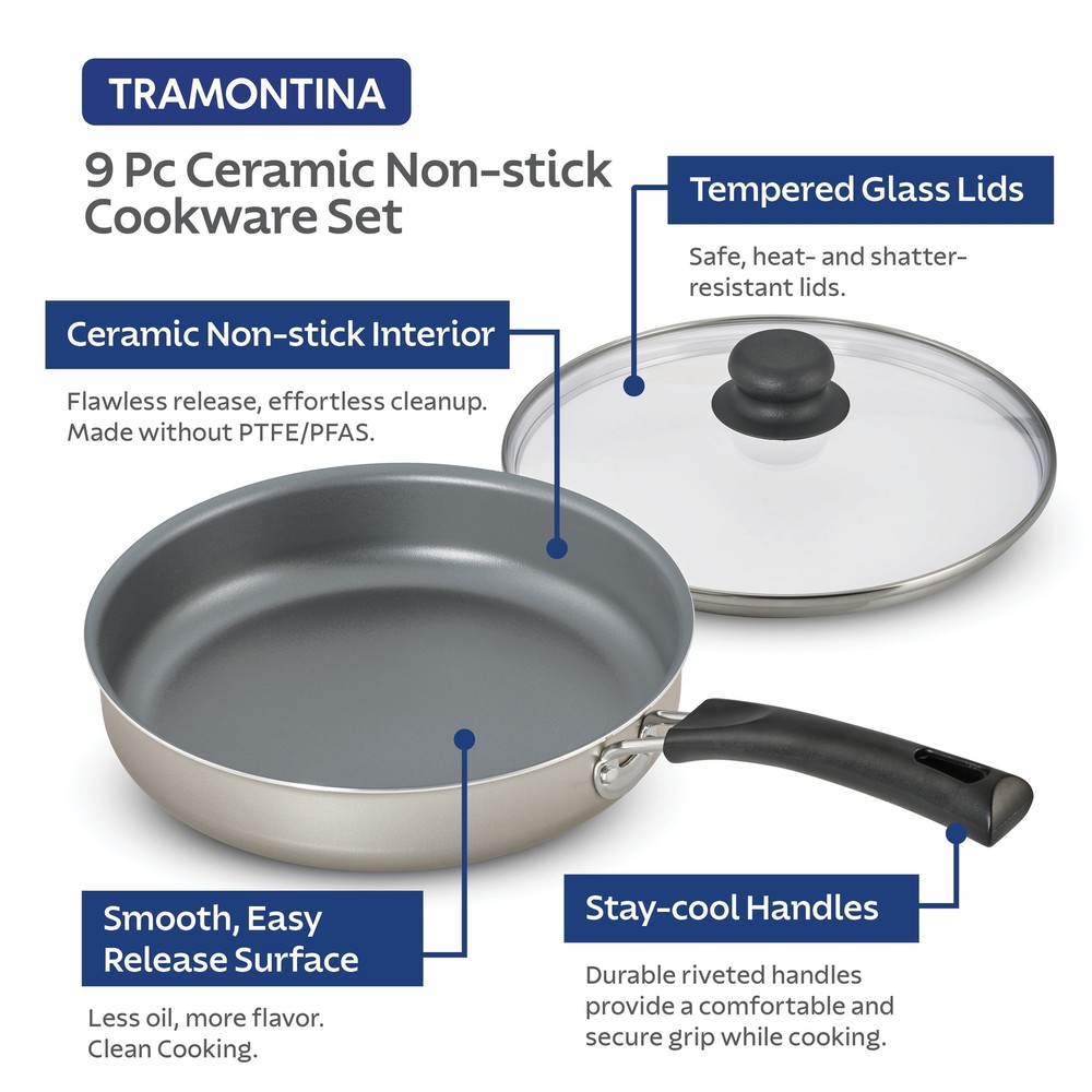 The 9-piece Easy Cooking Ceramic Cookware Set provides all the cooking essentials. The ceramic coating of the inner pot ensures easy cooking and easy cleaning, while the heat-resistant and shatter-resistant tempered glass lid allows you to quickly monitor the cooking progress. Lightweight and durable, this aluminum cookware set includes a variety of accessories to cook a variety of different dishes for different groups of people. Easy to hand wash, this set is ideal for beginners and is also an ideal supplement for those who like to choose different sizes of pots when cooking. The set is available in two color options, so you can choose the best style according to your current kitchen design. On Apr 26, 2025 at 01:11:30 PDT, seller added the following information: On Jul 1, 2025 at 01:50:17 PDT, seller added the following information: