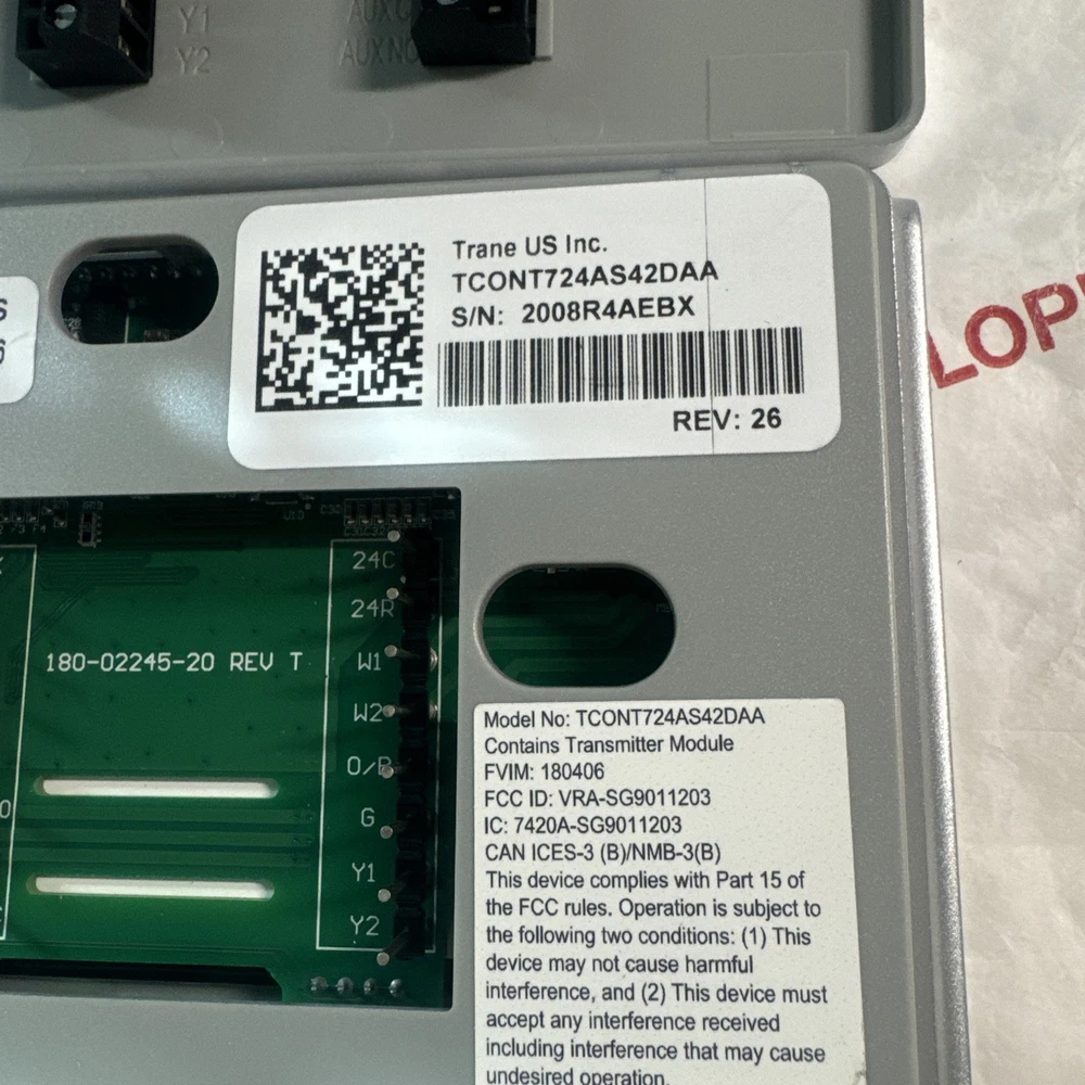 Trane TCONT724AS42DAA Touchscreen Comfort Control Thermostat XR724,SN:2008R4AEBX All comes as seen in the pictures of the item listing for sale and no other accessories are not included, Required C common -24VAC to power this Thermostat C=-24VAc R=+24VAc