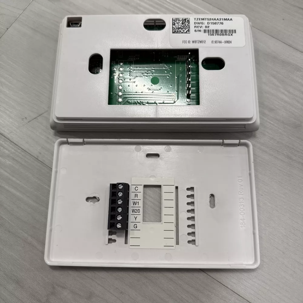 Brand:TraneControl Style:DigitalSystem Switching:AutoColor:WhiteVoltage Type:Line VoltageNumber of Periods per Programmable Day:7MPN:TZEMT524AA21MACool Stages:1Sensor Technology:TemperatureMounting:Wall-MountedHeat Stages:1Model:Trane TZEMT524AA21MAVoltage:24 VThermostat Shape:RectangularProgrammability:ProgrammableMaterial:PlasticThermostat Programmable Days:7- Day