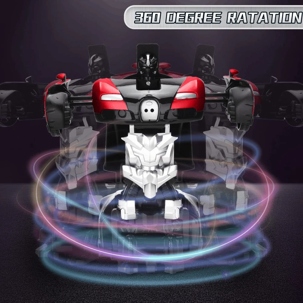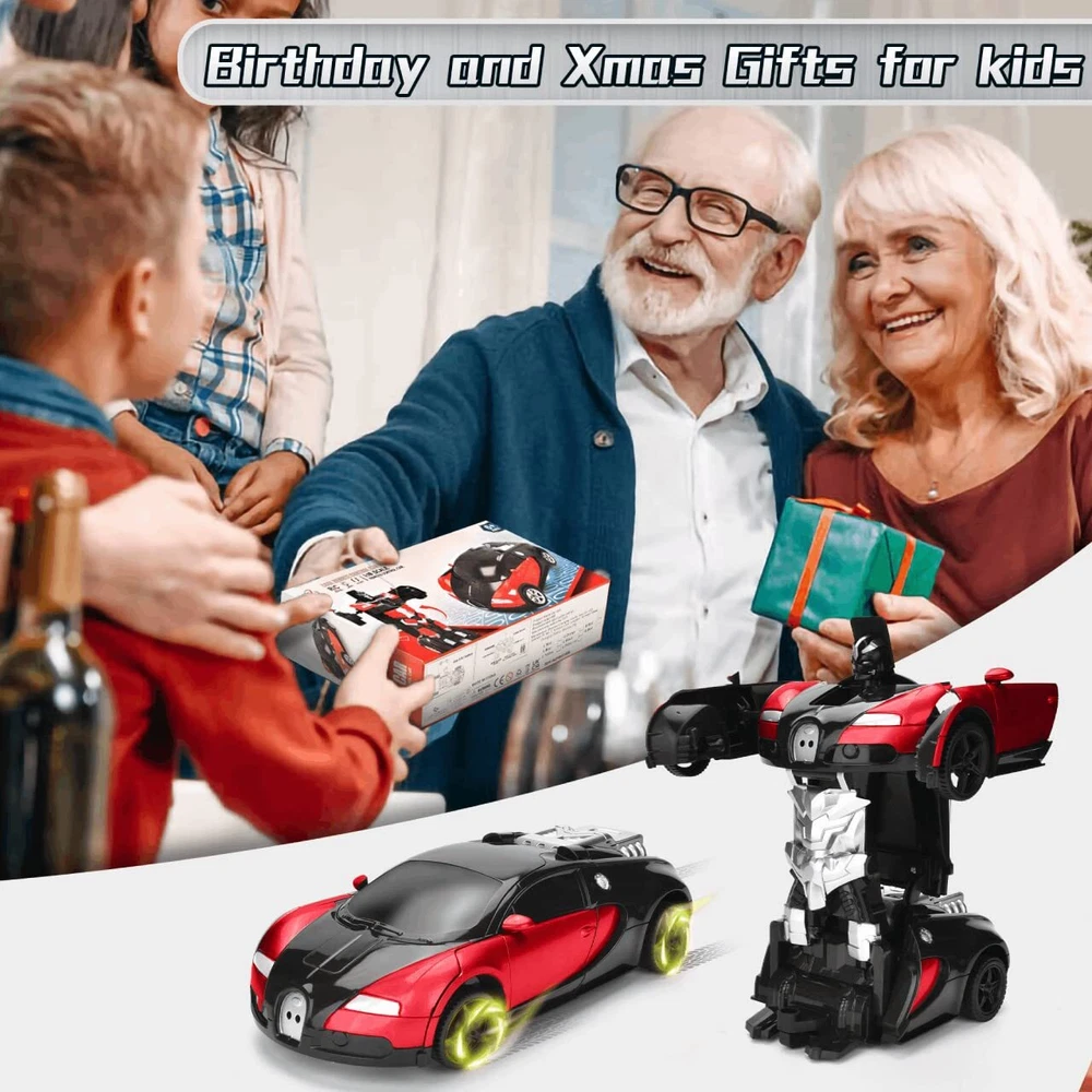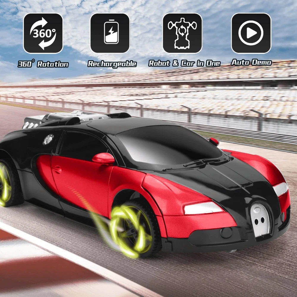 Give a surprise With more ways to play, keep young occupied for hours, help your develop their coordination, hand-eye combination,and the sense of direction. Controllable exciting sound, if you don't love the music, press the auto demo button about 3 seconds to turn on/off music. Transforming Robot Warrior Remote Control Sports Car 1/14 Scale Specifications: Robot Dimension: 9"(L) x 3"(W) x 10"(H) Car Dimension: 11"(L) x 5"(W) x 3"(H) Material: ABS Plastic Robot Battery Type: Rechargeable (included) Remote Battery Type: (2) AA (not included) Distance Control: 80-100 meters Run Time: about 35 min Recommended for ages: 6+ years Package Includes: 1 x RC Transform Car 1 x Remote Controller 1 x USB Charge Cable 1 x Rechargeable battery (Please charge for at least 8 hours for the first 2 times.) Warm Tips: 1.Please remove the batteries from the remote controller if not in use for a long time. 2.Requires 2 x AA batteries for remote controller (NOT INCLUDE). 3.The RC cars robot contains small parts, small age must play under adult supervision. 🚕Induction & button deformation: Interesting way to play.It can deform from car to robot when you press the button on the controller or with your hand to sense. Cruise down the streets in a drifting sports car or man the battlefield with an intergalactic robot. This will surprise the . 🚗Realistic RC Cars: Realistic Engine and acceleration sound. It has 5 smooth wheels and could Super Fast Drifting 360° turn in both robot and car. 🚓key auto demo: Controller toggles for forward, backward, left and right, button deformation, key auto demo - After pressing the demo button, accompanied by the exciting music, it will presenting you wonderful shows. ♻Safety: 100% harmless plastic and electronic elements. Car body with environmentally friendly anti-fall material, strong and resistant to fall, to deal with a variety of barbaric children's operation. 🎁Great Gift: 2.4Ghz Strong Transmitter system, dynamic music, creative rc cars for . Great as a birthday or festival gift. Keep your children away from computers, mobile phones, and TV, improve their coordination and thinking skills.