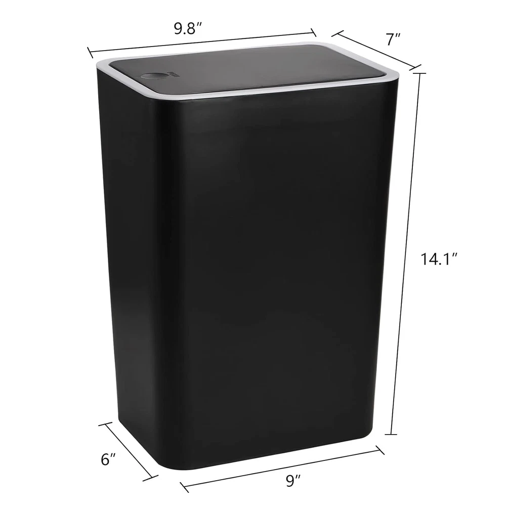 Item Height: Does not apply Product Dimensions: 9.8 x 7 x 14.1 inches; 3.42 Pounds Room Type: Bathroom,Bathrooms,Bedroom,Kitchen,Living Room,Office,Room Finish Type: Polymer gtin13: 313111847861 Opening Mechanism: Press-Top Type: Does not apply Country of Origin: China Special Feature: Open Top, Lightweight Brand: Does not apply Item model number: F-TrashCan-4Gallon-black/gray Item Length: Does not apply Material: Plastic Capacity: 4 Gallons Color: Gray or Black UPC: 313111847861 Recommended Uses For Product: Bathroom,Kitchen,Office Shape: Rectangular Item Width: Does not apply