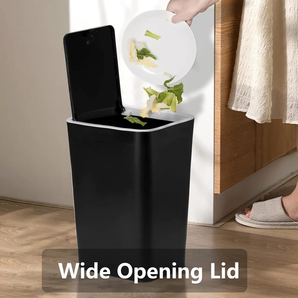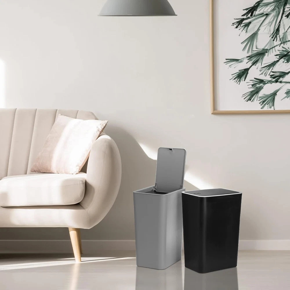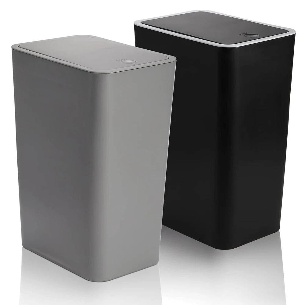 Trash Can, 2 Pack 15 Liter / 4 Gallon Plastic Garbage Container Bin with Press T