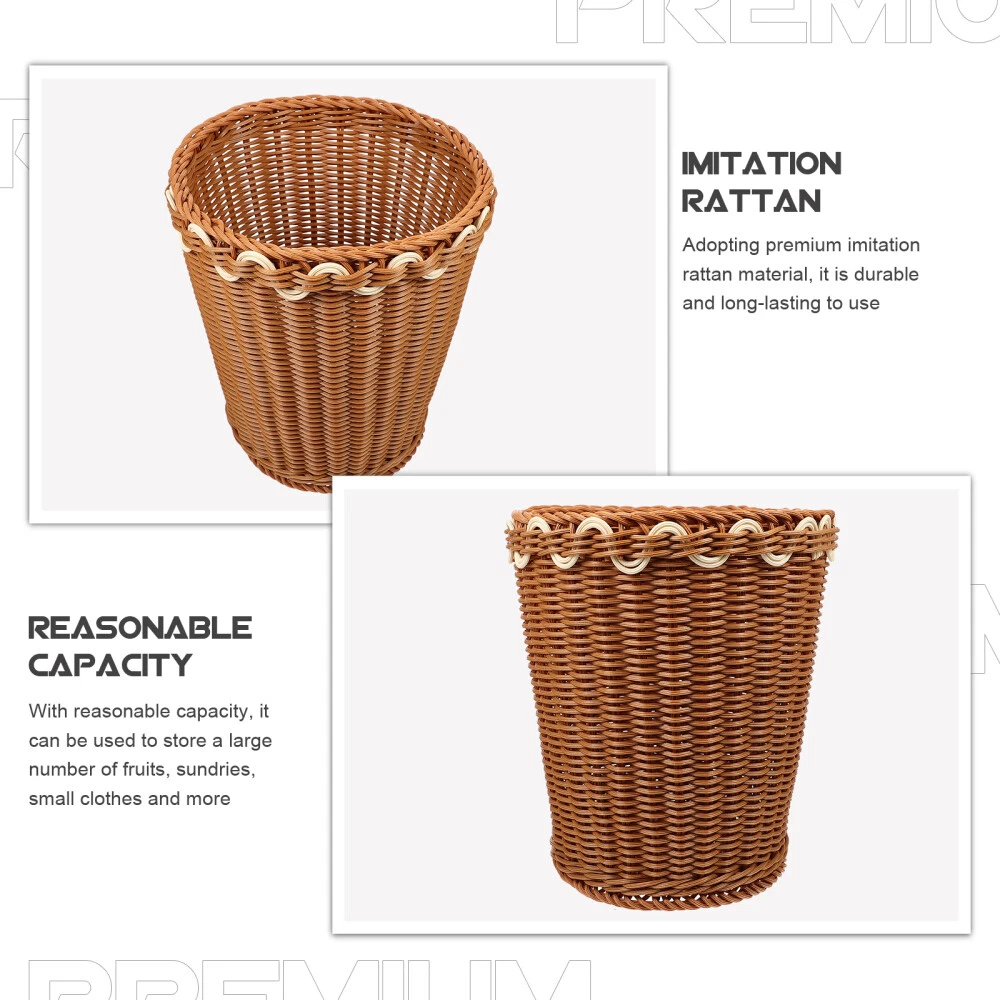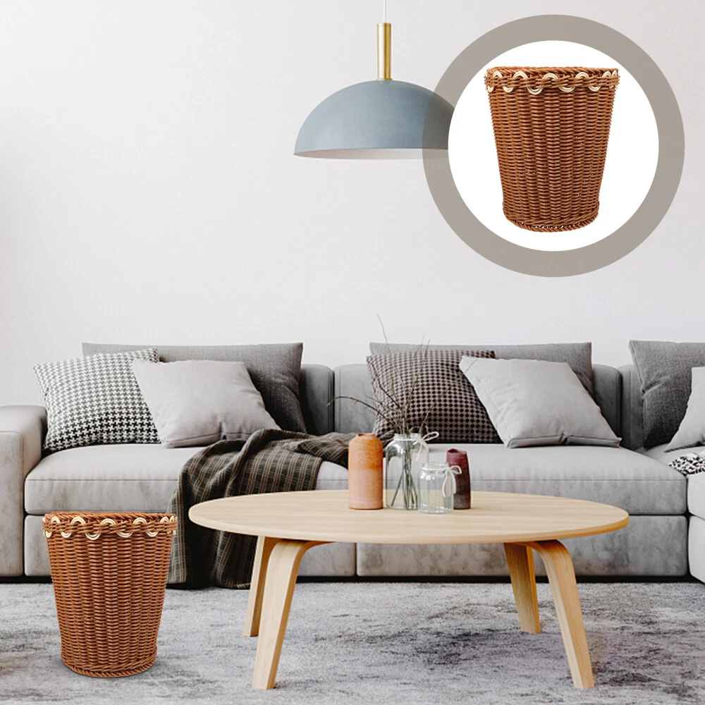 Trash Can with Lid Wicker Wastebasket Woven Storage Baskets Toy