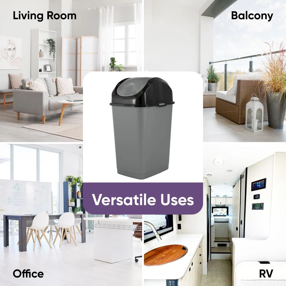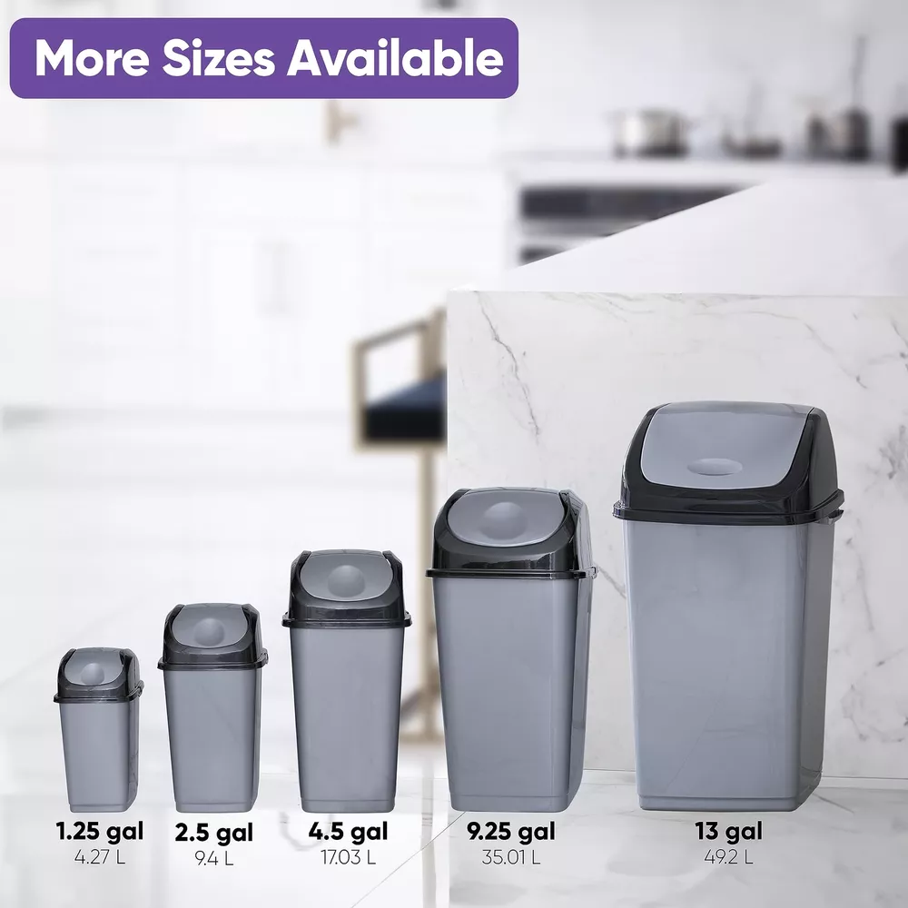 This high quality 35 LITER SLIM TRASH CAN is especially designed to fit narrow areas and is a great space saver. It offers an easy to use swinging cover that opens smoothly from both sides. convenient handles for easy carrying and a classical design and shape. Heavy-duty & Lightweight- The unique design of our trash cans distributes weight properly to avoid cracks and dents. The PP plastic holds up well without bulky reinforcement points. That makes it more compact and lightweight. Swing Top Lid – Keep your trash contained and out of sight with this easy swing lid garbage bin. It closes right away preventing any trash from getting out and makes it easier to clean while not having to use a regular opening lid. It’s a useful addition to your office, bathroom, or kitchen, Rv or dorm room. Durably Constructed – Classic, convenient and versatile, this trash bin is the perfect solution to your trash problem. This durable and high-quality plastic wastebasket helps keep your home clean and more organized, while also eliminating bad odors in the room! Easy to Use and Maintain – Our Swing Top Trash Can is a great way to your trash without the worry of spilling. The wide opening makes it convenient to put trash in and it lets you easily access the wastebasket so you don't have to bend over as you empty it. Place it anywhere – Our collection of durable, practical trash cans is the ultimate way to keep your home neat and clean. The 9 gallon trash can has a simple yet effective design that looks great on any decor. Use it as kitchen trash can, bathroom trash can, office trash can, hallway trash can, dog poop trash can, and more!