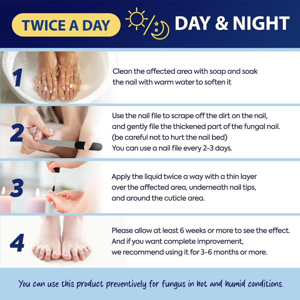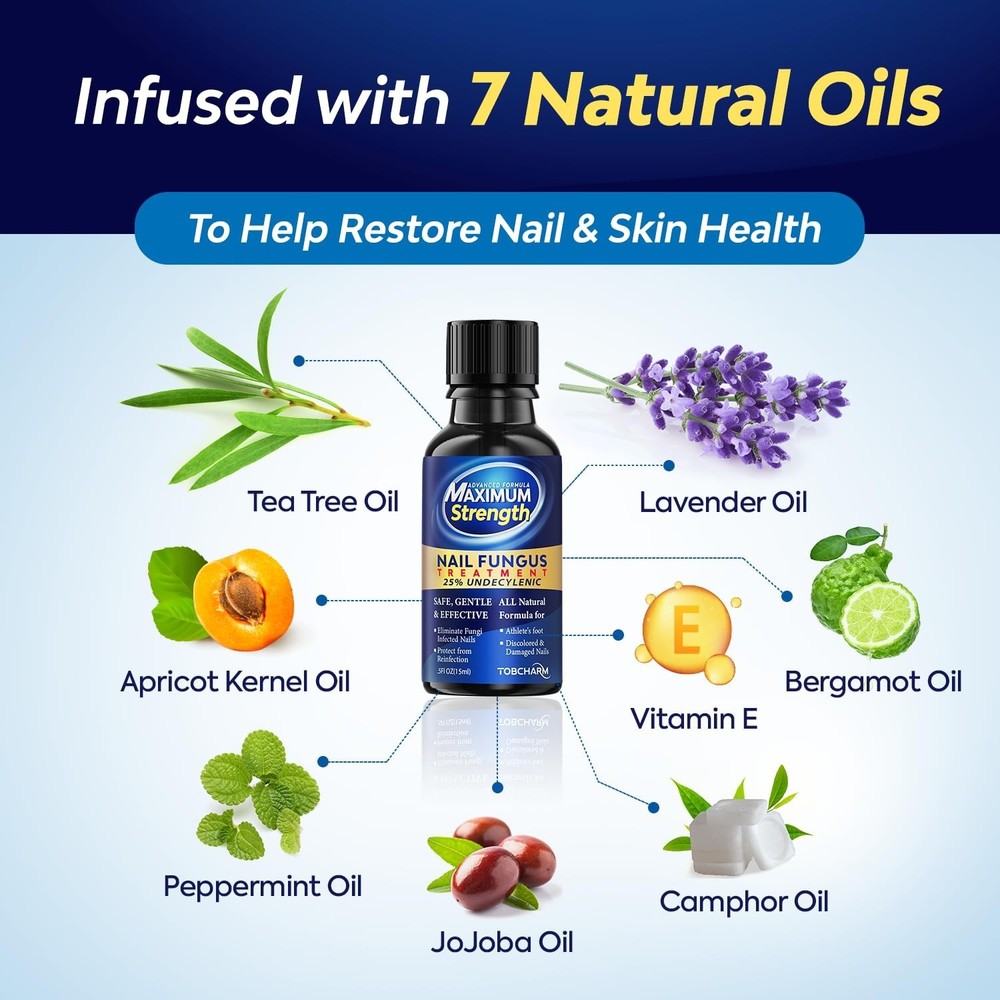 INNOVATIVE Toenail Fungus Treatment Extra Strength : A Cutting-Edge Solution for nail fungus - This groundbreaking method harnesses the potency of scientific advancements and natural components to efficiently eliminate fingernail and toe nail fungus, targeting the area both under and around the nail. SAFE & RELIABLE : Our Nail Fungus Treatment for Toenail is not only potent and highly effective in treating fingernail and toe nail fungus, but it is also completely safe with no reported side effects. Experience the effectiveness of our Toe Nail Fungus Treatments. RESTORE & REVITALIZE : Our Nail Fungus Treatment Extra Strength features potent ingredients that not only combat the fungus but also play an important role in restoring and revitalizing damaged, cracked, or discolored nails, giving you a comprehensive solution. NATURAL & GENTLE : Our Toe Fungus Treatment for Toenail is enriched with a blend of 7 natural oils, carefully chosen to promote the restoration of your nail and toenail health. This Fungus Nail Treatment contains Tea Tree oil, Jojoba oil, Lavender oil, Peppermint oil, Apricot Kernel oil, Camphor oil, and Bergamot oil. USER-FRIENDLY APPLICATION : Our Toe Fungus Treatment for toenail is easy to use. Apply fungus nail treatment to the skin at the base of the cuticle and along the edges of each infected nail 2 times daily. Allow the Toenail fungus treatment to absorb for five minutes for optimal results.