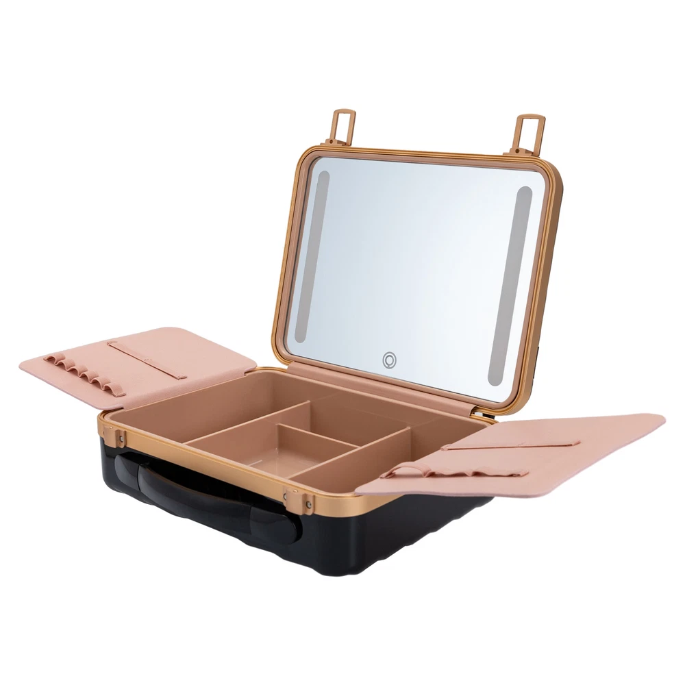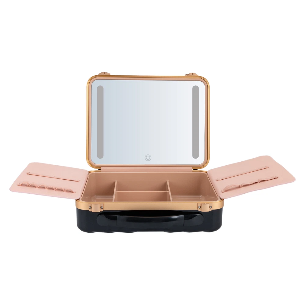 Travel Makeup Bag Case Storage USB Portable Makeup Box with LED Light & Mirror Description Description Whether you're working or traveling, a professional makeup case will be a great convenience. This portable makeup box is made of high-quality material, which is strong and durable. The compartmentalized design makes the items neatly organized, and the clear mirror and LED lights are convenient for you to apply makeup in various environments. It is ideal for professional makeup artists and cosmetologists. Key Features High-quality Material: The product is made of high-quality ABS, aluminum alloy, and silicone with the injection molding process, which is strong, pressure-resistant, waterproof, impact-resistant, corrosion-resistant, rust-resistant , and has a long service life. Categorized Storage: Four compartments inside have large storage space to categorize and organize your various cosmetics, and two baffles with elastic bands can store and secure makeup brushes, as well as prevent cosmetics from coming into contact with the mirror. Humanized Design: There is a large 4K silver-plated mirror with LED light inside the product, and the light colour can be easily adjusted/infinitely adjusted between warm light, neutral light and white light by touching/long-pressing the switch, which can help you see more details of your makeup and restore the true state of your makeup. Long Endurance: With a built-in 5000mAh rechargeable lithium battery, it can be illuminated for 4-6h after being full charged. Equipped with a USB charging cable, you can charge the product via mobile power, laptop, or adapter(not included), which is very convenient for both home and travel. Ideal Gift: With a stylish appearance and practical functions, this product is an ideal birthday and holiday gift for family, friends, fashionistas, and beauty lovers. Ready to Use: This product does not require assembly, and you can start using it once you receive it, saving the tedious installation process and making it more convenient. Effortless Cleaning: Thanks to the smooth surface and simple structure, you can easily wipe off the dirt on it with a soft cloth. Protective Packaging: The sponge can better protect your product during transportation and make it delivered to you completely to the greatest extent. Good Customer Service: We stand behind all our guests and look forward to assisting you with your purchase. It is our pleasure to answer your confusion and questions. The end of the story between us is not "we sell and you buy". Details Comfortable Handle: The silicone handle is comfortable to grip and easy to carry so that you can always keep your delicate makeup even when you are traveling. Solid Base: With 4 silicone feet on the back of the case, it can hold the product in place so that it is not easy to slide. Stable Hinges: The robust hinge makes it easy to open (up to 180°) and close without being damaged. Rounded Corners : The corners and smooth edges are designed to provide a comfortable and safer touch. Application This product is suitable for travel and home makeup use or as a jewelry case, ideal for makeup artists, hair stylists, nail technicians, and cosmetologists. Specification Color: Black Style: Modern Shape: Rectangle Material: ABS, Aluminum Alloy, Silicone Process: Injection Molding Assembly Required: No Opening Method: Buckle Power Source: Battery Powered, USB Light Source: LED Light Color: Warm, Neutral, White Battery Type: 1*5000 mAh Lithium Battery ( Included ) Charging Time: About 1-2h Endurance Time: 4-6h Maximum Opening: 180° Gross Weight: 2kg/ 4.41 lbs Net Weight: 1.6kg/ 3.53 lbs Package Size: 33*14*29 cm/ 12.99*5.51*11.42in Product Size: 29*9*22 cm/ 11.42*3.54*8.66 in Package Included 1* Portable Makeup Box 1* Chinese and English Manual 1* USB Charging Cable Notes Please note that cosmetics and make-up tools are not included. Please read the operating manual completely before use. And pay particular attention to the safety instructions included. Please allow the slight color difference caused by the shooting light and the 1-3 cm error due to manual measurement, and make sure you do not mind before ordering. Payment Delivery details Terms of sales About us Contact us Payment We accept ebay payment 。 Fees such as import duties, taxes are not included in the item price or shipping costs. These charges are the buyer's responsibility. Delivery details Shipping: 2-9 working days to: USA Terms of sales We maintain high standards of excellence and strive for hundred percent customer satisfaction. Feedback is very important to us. We hope that you contact us immediately before you give neutral or negative feedback, so that we can address your concerns. It is impossible to address issues if we do not know about them! About us Your satis faction is our ultimate goal. We work hard to earn your trust and future business. Our certified technicians have tested each item before shipping. The unit comes with 1 year limited warranty on all manufacturing defects. a) If you receive a defective item, you may return it or ask for a discount. Please contact us within 14 days after you receive the package. b) What you returned must be intact and in its original packaging as re? u. Customer is responsible for shipping costs of the returned item. c) We will cover the cost of shipping back t with the shipping rate indicated in the registration page. We will send you a new unit or refund the full payment you paid. Thank you. Contact us Business Hour Business Hour: Monday To Friday: 8:30 AM to 5:00 PM (Beijing China time) Due to time zones, our reply to your questions may not be immediately. But within above working time, we will reply your email within 24 hours. If it's non-workdays, please kindly be patient and wait till Monday. Please contact us with ebay message. Please feel free to contact us if you have any questions. Monday To Friday: 8:30 AM to 5:00 PM (Beijing China time) Due to time zones, our reply to your questi