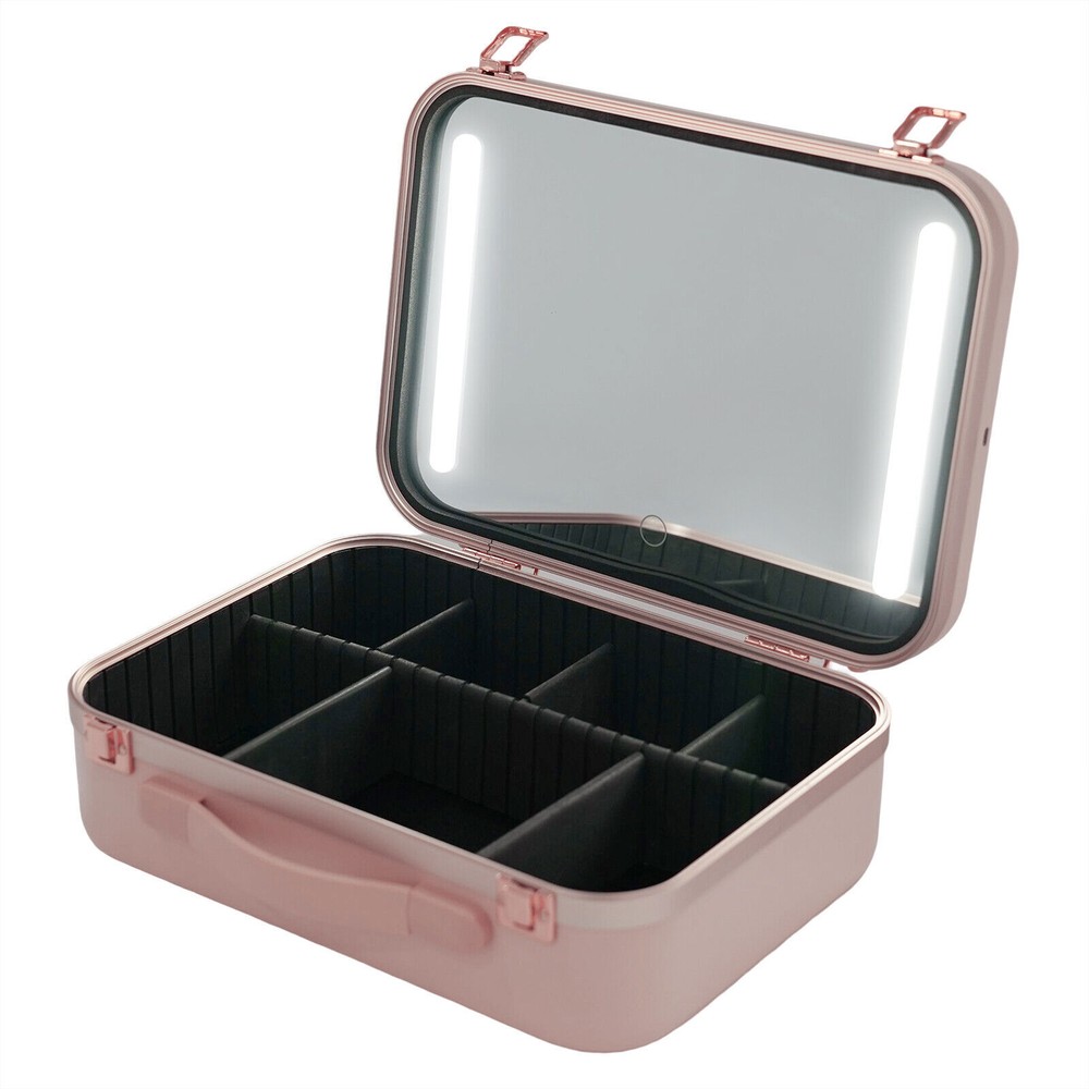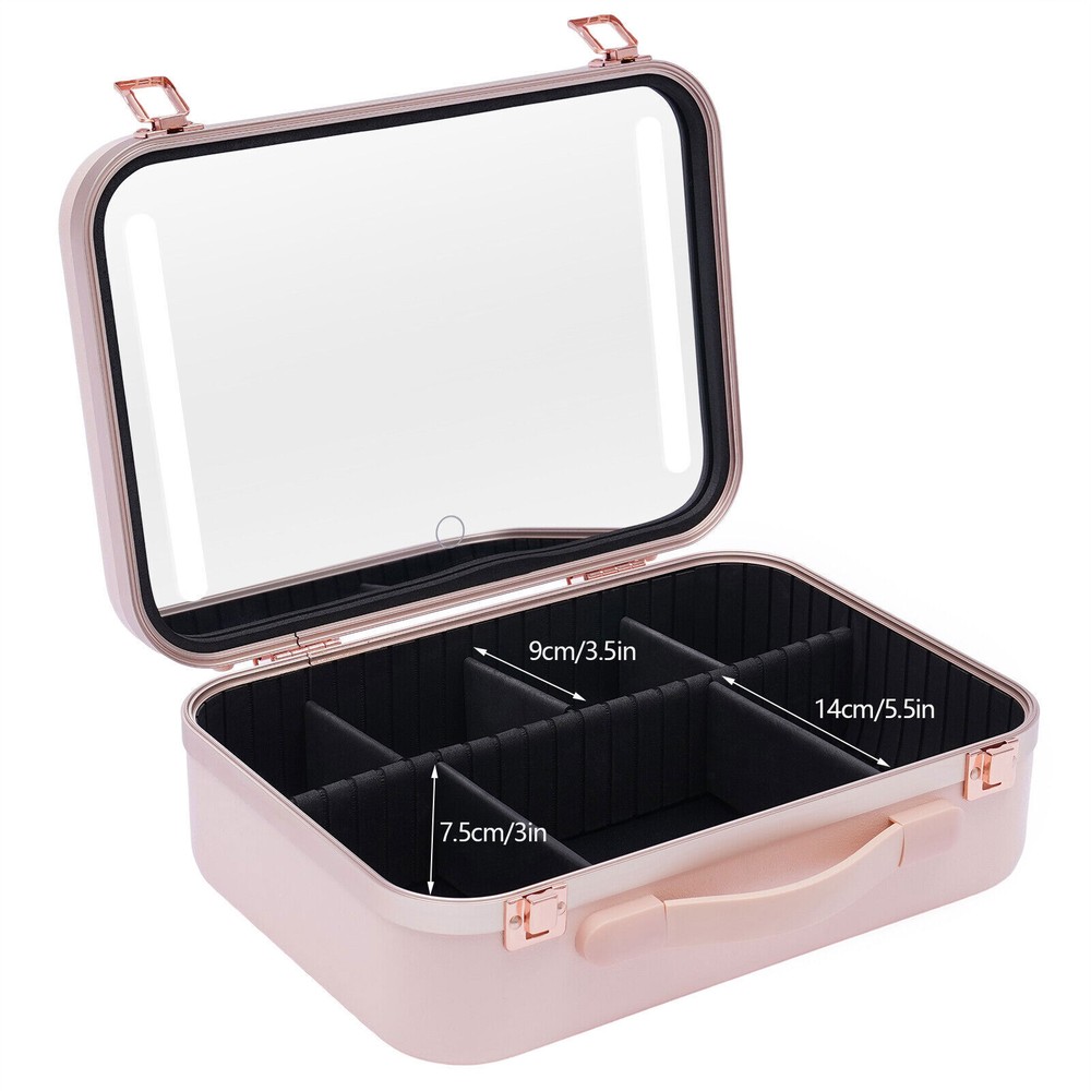 This makeup train case is a game-changer for beauty lovers! The sleek pink and white design looks luxurious, and the built-in LED mirror with adjustable lighting is perfect for flawless application anywhere. Love that it charges via Type-C and works with power banks—so convenient for travel. The touch screen controls make switching light temperatures effortless, and the sturdy PC and aluminum alloy construction keeps everything safe. Spacious yet compact, it’s a must-have for makeup pros and beginners alike!