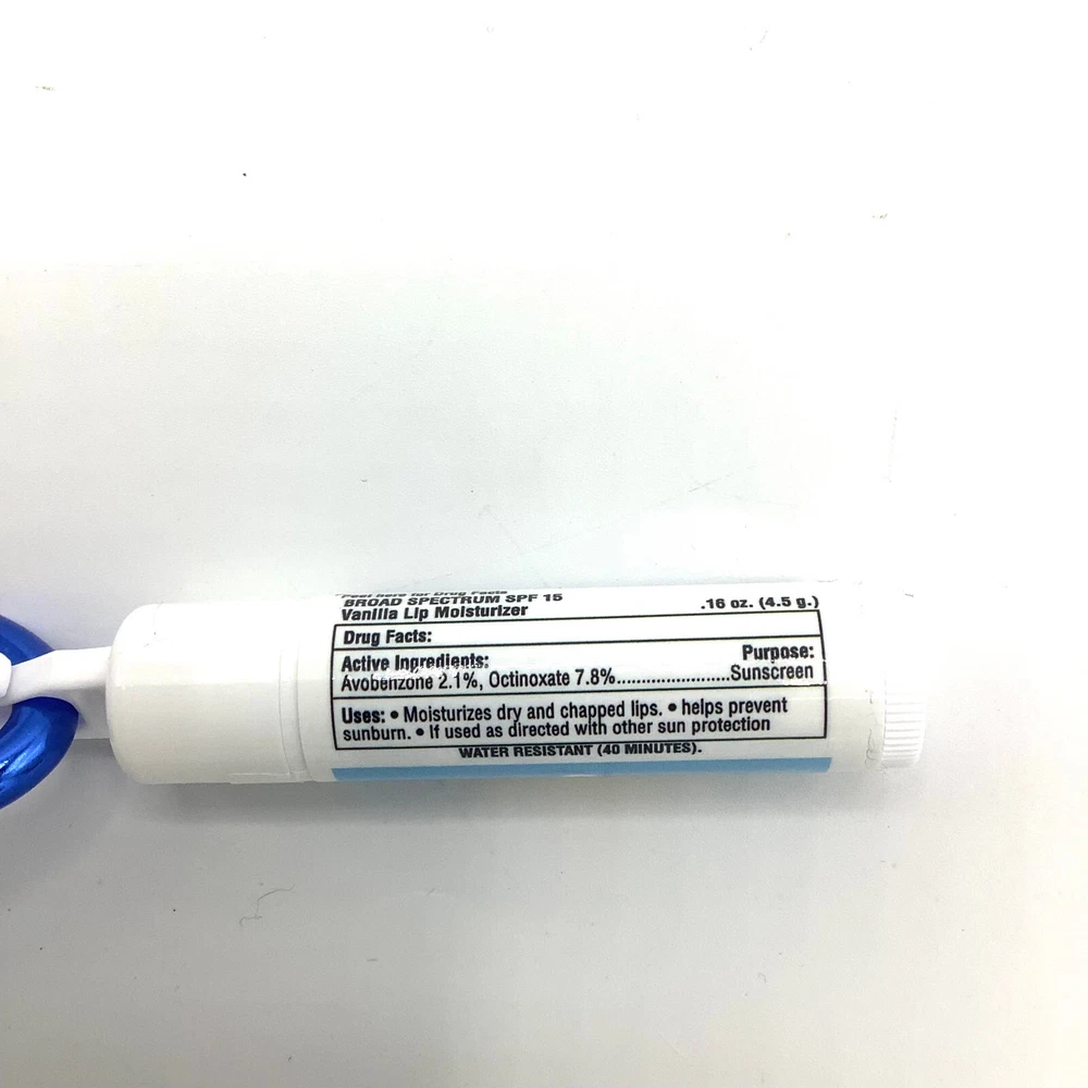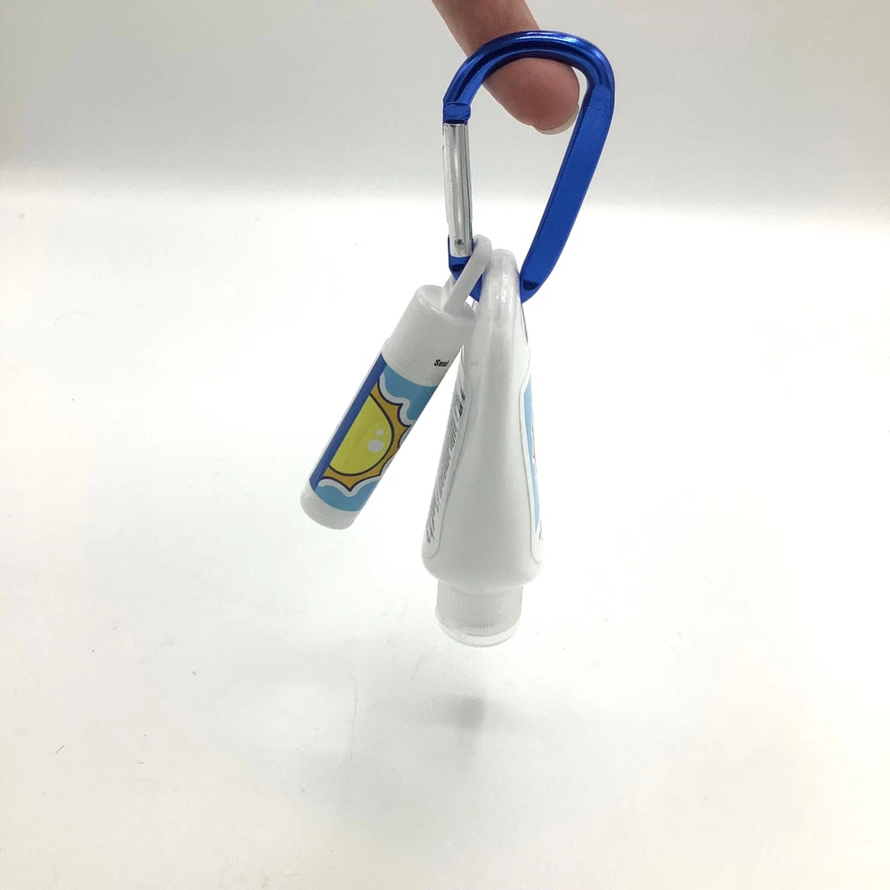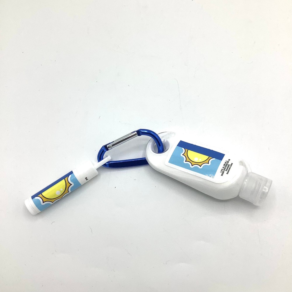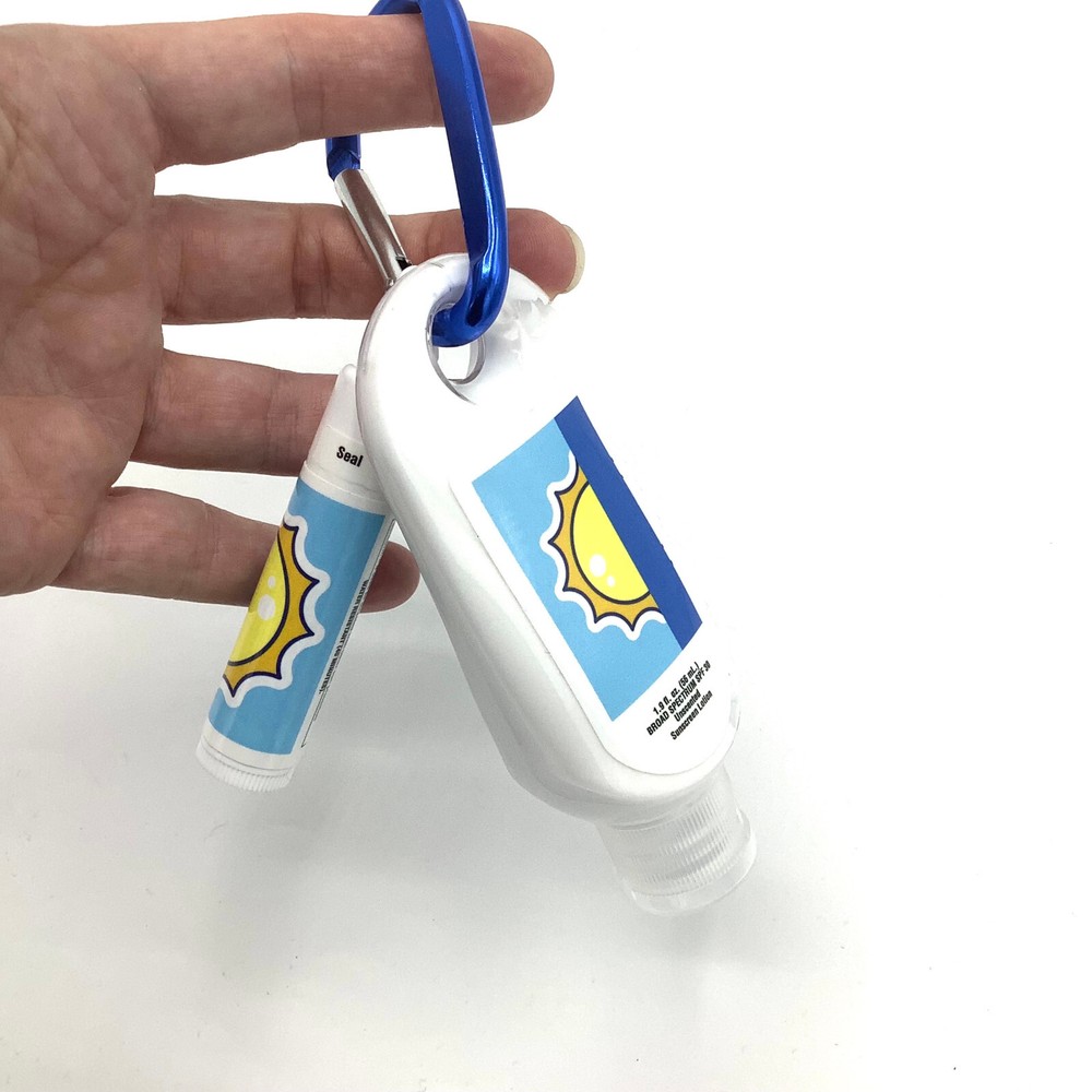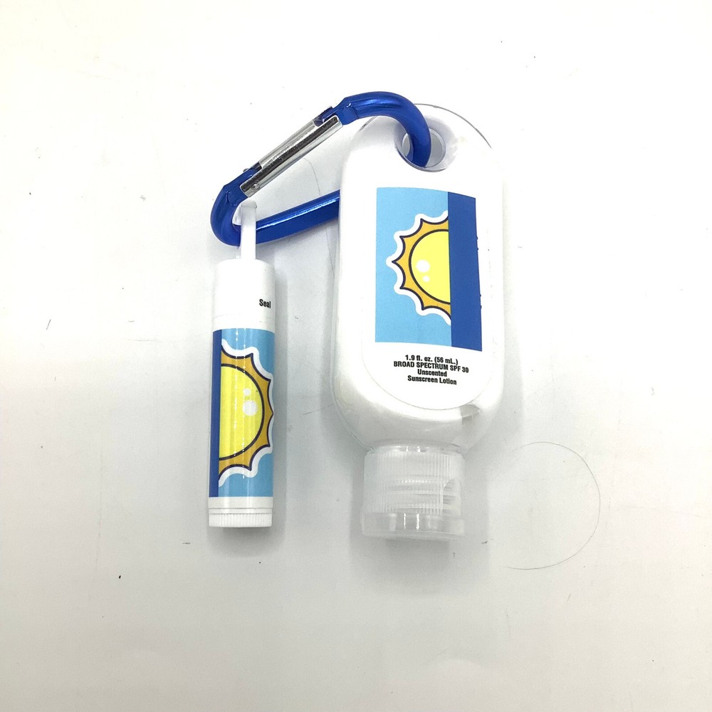 NEW Travel Sunscreen Lotion SPF 30 & Vanilla Lip Moisturizer on Carabiner Clip. Brand new, unused.