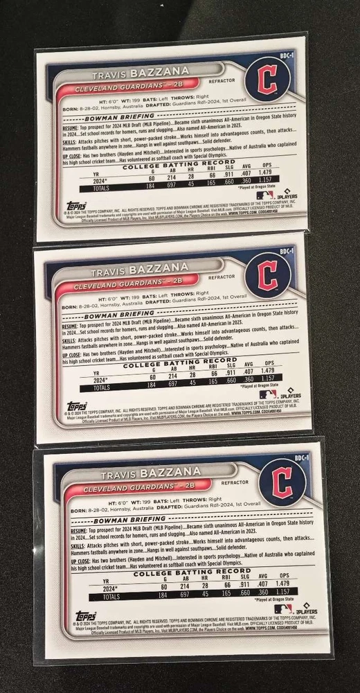 Travis Bazzana 2024 Bowman Chrome Draft 1st Refractor Guardians #BDC-1 Lots3 HD