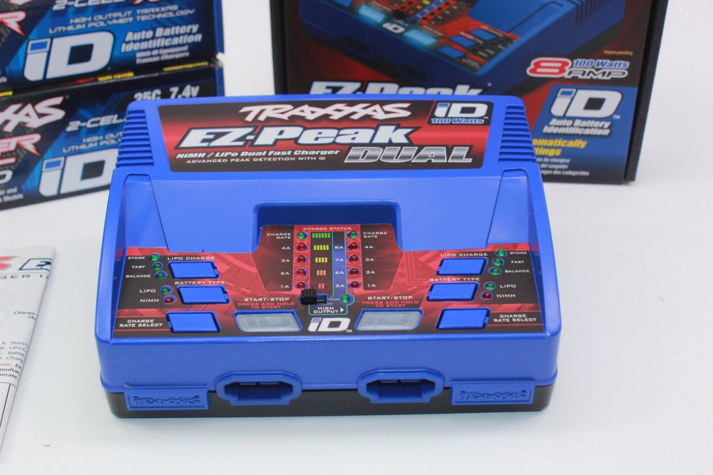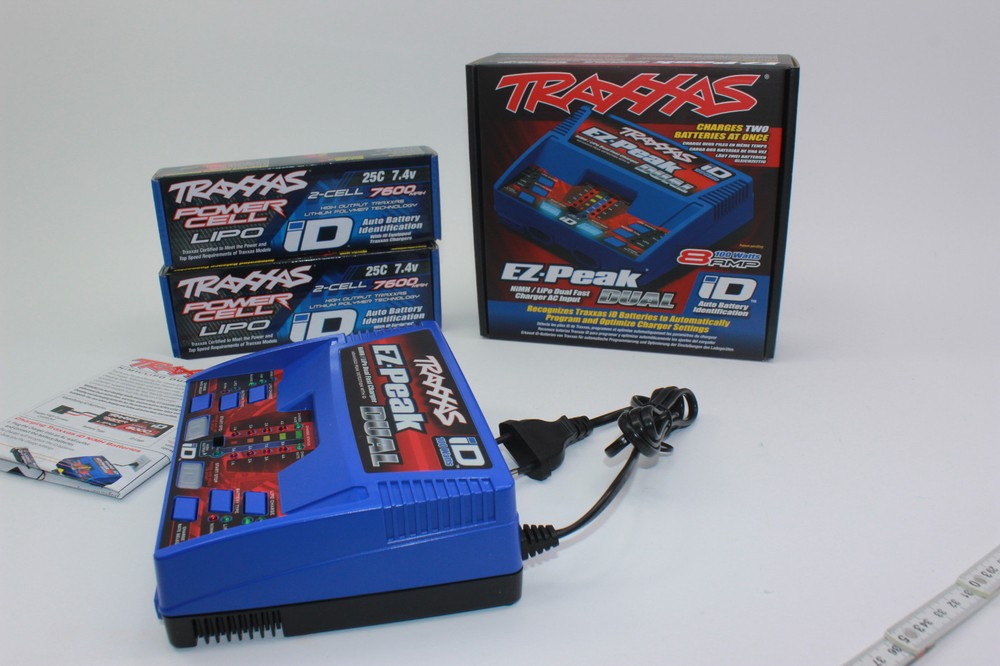 Traxxas 2991 Dual ez peak Plus Charger 104.8oz+2x 2S Lipo 7600mAh 2869X New The description of this item has been automatically translated. If you have any questions, please feel free to contact us. This is the 2s Completer package with Traxxas EZ-Peak 100W dual charger with iD automatic battery identification and two Energy Storage 7.4V 7600mAh 25C 2s LiPo batteries. Included: EZ-Peak 100W - Traxxas Dual Charger with AC Power Cord -(2) Power Cell 7.4 V 7600mAh 25 C LiPo 2 s batteries high current connector with integrated balance plug Features: Charge two batteries at the same time 8 amp output Traxxas' fastest, most powerful charger It is impossible to connect backwards 2 LiPo batteries conveniently included world-of-modells wishes you lots of fun Visit our Ebay Store there you will find more series models at top prices and save shipping costs Information on the return of used batteries According to the Battery Act (BattG), batteries may not be disposed of with household waste. As an end user, you are therefore legally obliged to return used batteries. As a distributor of batteries and products containing replaceable batteries, we are obliged to take back used batteries (with the exception of products with permanently installed used batteries), whereby our take-back obligation is limited to used batteries of the type that we have or have had in our range as new batteries and to the quantity that end users usually dispose of. You can therefore either send old batteries back to us with sufficient postage (please insulate the poles for postal delivery to avoid the risk of fire) Meaning of battery symbols Batteries are marked with the symbol of a crossed out trash can marked. Contaminated batteries are specially marked with chemical symbols. For batteries that contain more than 0.0005 percent mercury by weight, more than 0.002 percent cadmium by weight or more than 0.004 percent lead by weight, the chemical name of the pollutant used is located under the garbage can symbol - "Cd" stands for cadmium, "Pb" stands for lead and "Hg" for mercury. According to the Battery Act (BattG), batteries may not be disposed of with household waste. As an end user, you are therefore legally obliged to return used batteries. As a distributor of batteries and products containing replaceable batteries, we are obliged to take back used batteries (with the exception of products with permanently installed used batteries), whereby our take-back obligation is limited to used batteries of the type that we have or have had in our range as new batteries and to the quantity that end users usually dispose of. Batteries are marked with the symbol of a crossed out trash can marked. Contaminated batteries are specially marked with chemical symbols. For batteries that contain more than 0.0005 percent mercury by weight, more than 0.002 percent cadmium by weig Kraftstoff Elektro Marke Traxxas Modell ez peak Herstellernummer 2991 Produktart Ladegerät Modifizierter Artikel Nein Farbe blau EAN 020334297266