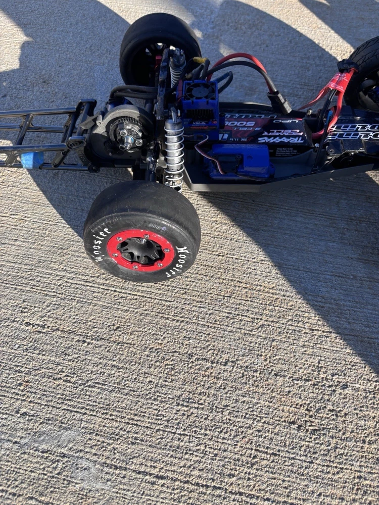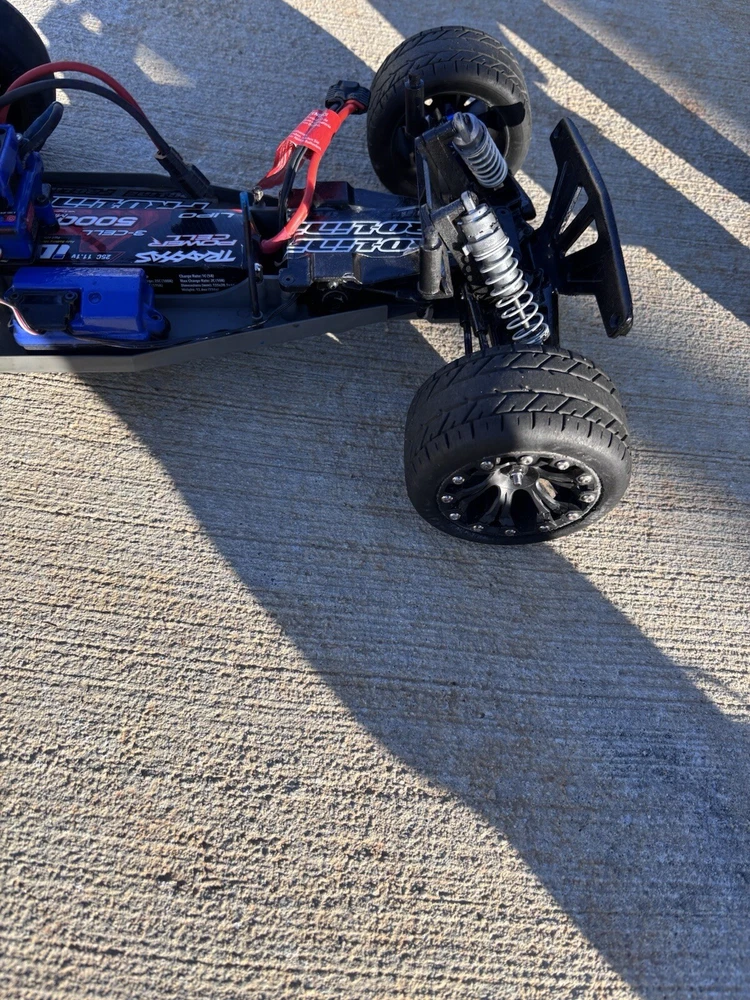 Traxxas Rustler Drag really fast runs perfectly fine noting wrong no issues or noting a LOT of upgrades parts added and comes with a 3s battery.
