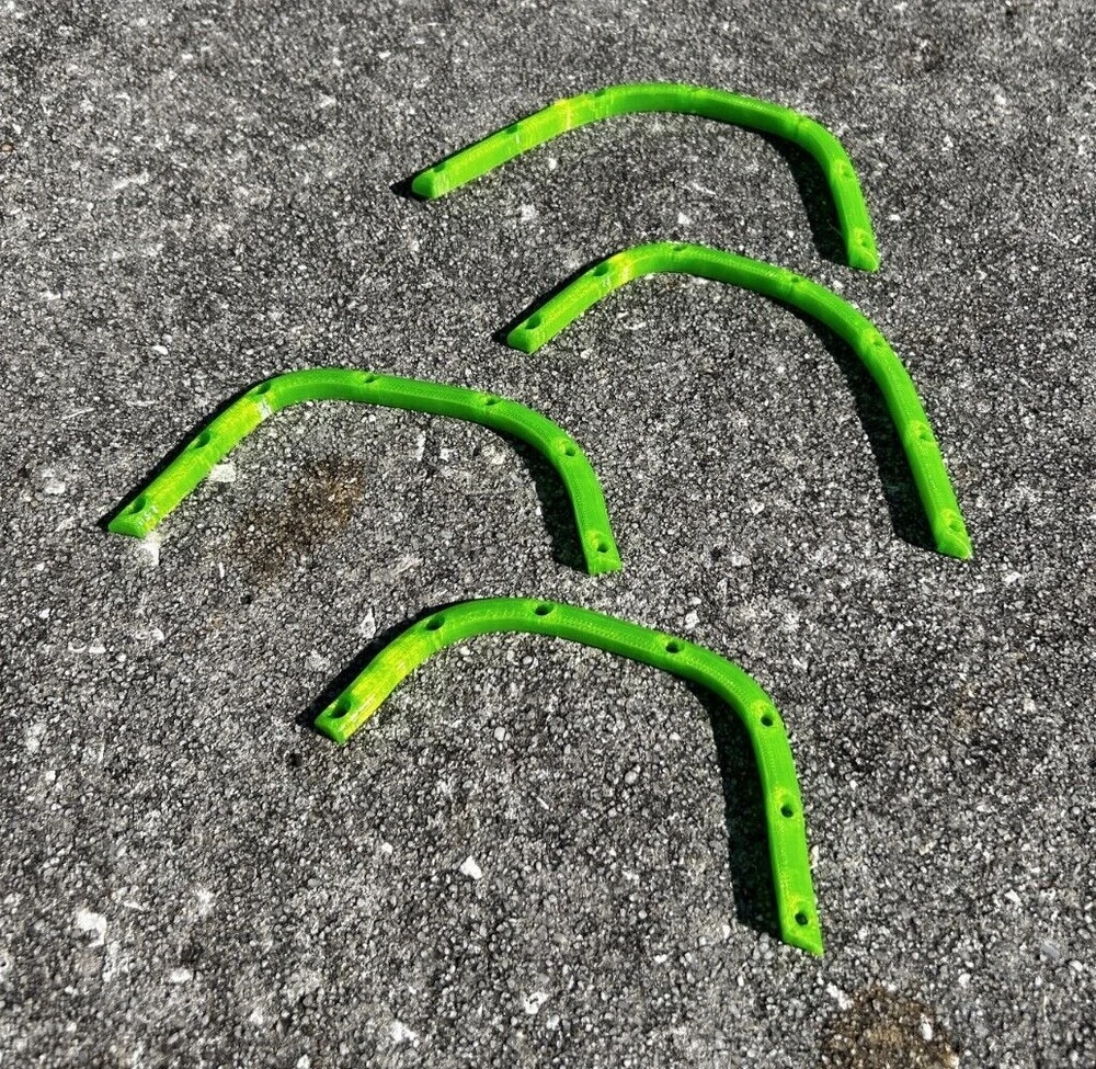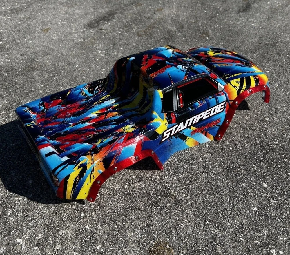 Stampede 2WD Body Fender Flares (Set of 4) Part Number: MS1001 Full set of Fender Flares for the Stock Body of the Stampede 2WD. These are made out of a strong and flexible material and will strengthen the edges of the body where cracks start to form over time. Stainless Steel hardware included. You will only need to provide the drill and 1/8” drill bit for the mounting holes. The best way I have found to install these is to line up the Fender Flare, then drill out the first hole. Place a bolt with a nut to tighten it down. This helps lining it up along the body for later holes. Next, skip the next one or two and drill out another hole. Bolt that one down and then keep going, skipping a couple just to get the main part lined up and mounted. Then go back and drill out the rest of the mounting holes. If you have any questions, please feel free to message me. Colors Available: Black, Red, Blue, Green, Orange, White Compatible With: Stock Stampede 2WD Body Check out the rest of my shop to find more R/C related products! Made with top quality materials that will last through your hardest bash sessions! Made in the USA!
