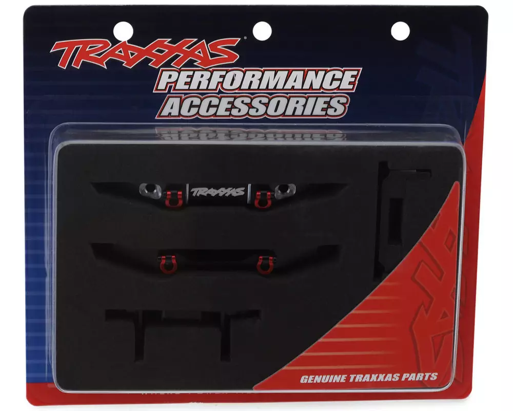 Bumpers Overview: The Traxxas TRX-4M Ford Bronco Aluminum Front and Rear Bumpers Set is the perfect upgrade for your TRX-4M Land Rover Ford Bronco platform. These high-quality aluminum bumpers are CNC-machined to ensure durability and strength, enhancing the scale realism of your Ford Bronco. With a sleek black anodized finish and machined edges, these bumpers not only look great but also provide superior protection against rough terrains. This bumper set includes red-anodized D-rings for added style and functionality, allowing you to tackle challenging obstacles with confidence. The high-clearance design ensures that the bumpers won't get hung up on rocks or debris, making them an essential addition for any serious crawler enthusiast. Note: This set is only compatible with TRX-4M with the Ford Bronco body. Features: CNC-machined aluminum construction Enhances durability and protection Black anodized finish with machined edges High-clearance design to avoid obstacles Machined light buckets for optional factory LED lights Functional winch fairlead and D-ring shackles Bosses for optional trailer hitch mounting Includes: (1) Aluminum Front Bumper with Mount (1) Aluminum Rear Bumper with Mount (4) Button Head Screws About Us | View Store