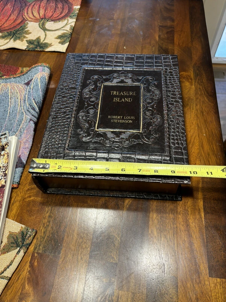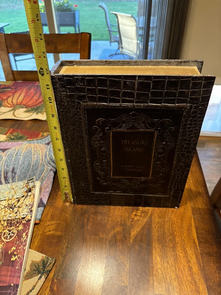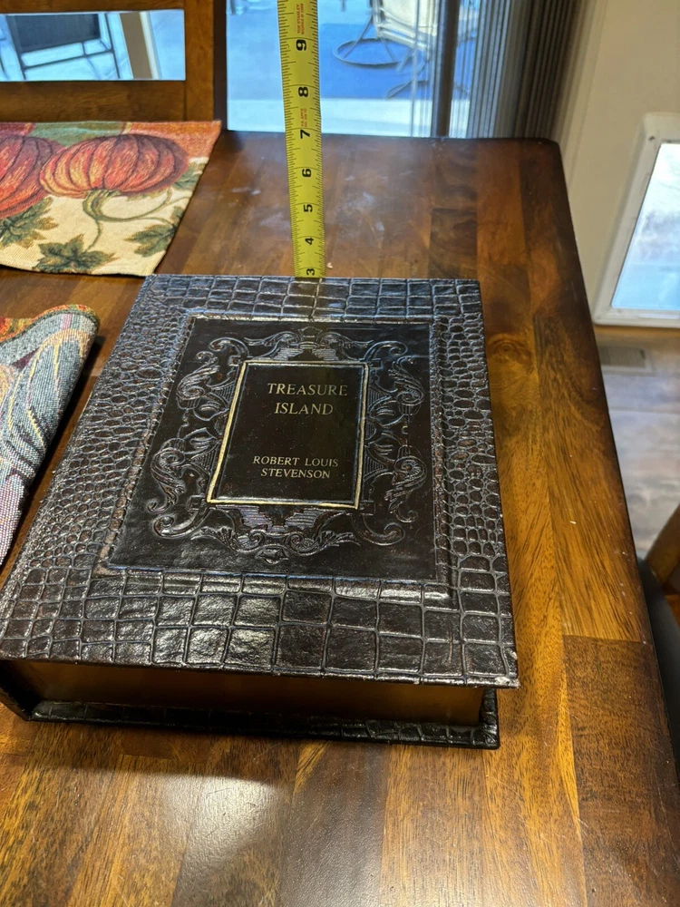 Keep your valuables safe and secure with this Treasure Island Book Box. This hideaway is perfect for those who want to keep their items hidden and protected. Measuring 17.5" x 15.5", this book box is the perfect size for storing your important documents, money, and other valuables. The hidden hinged design and lined interior provide an extra layer of protection for your items. Whether you're looking to keep your items safe at home or on the go, this Treasure Island Book Box is the perfect solution. Don't let your valuables fall into the wrong hands - keep them hidden and secure with this reliable hideaway.