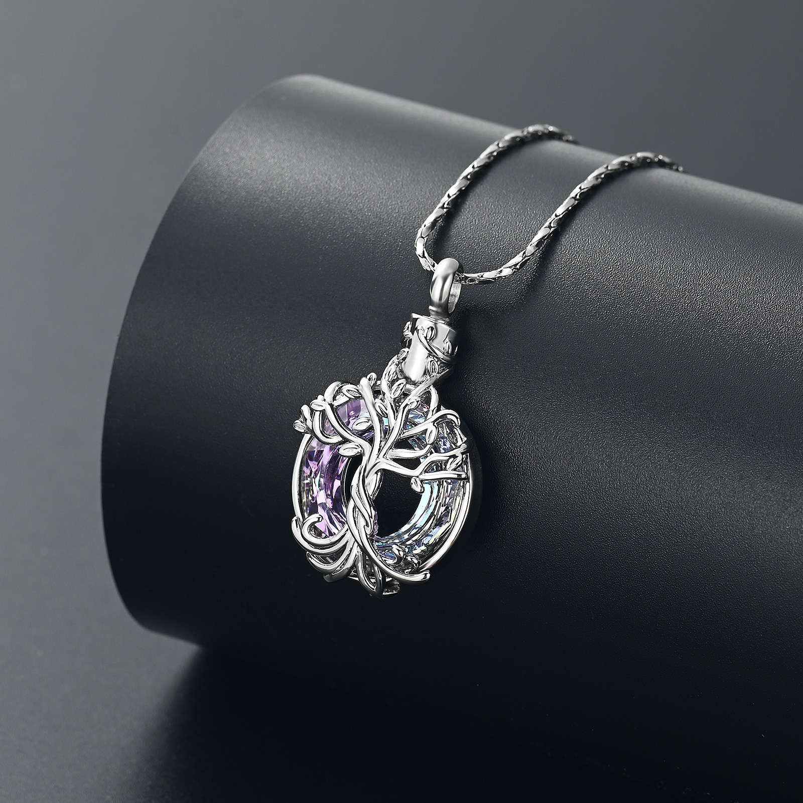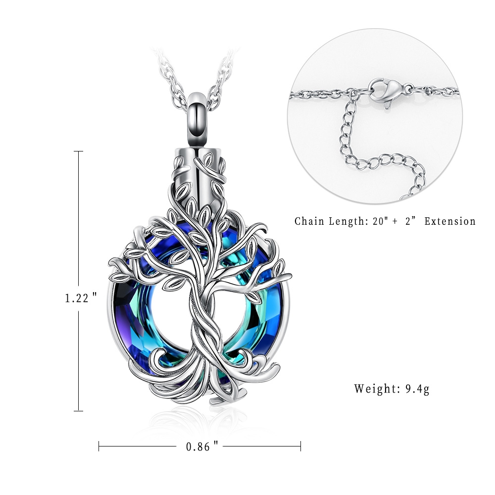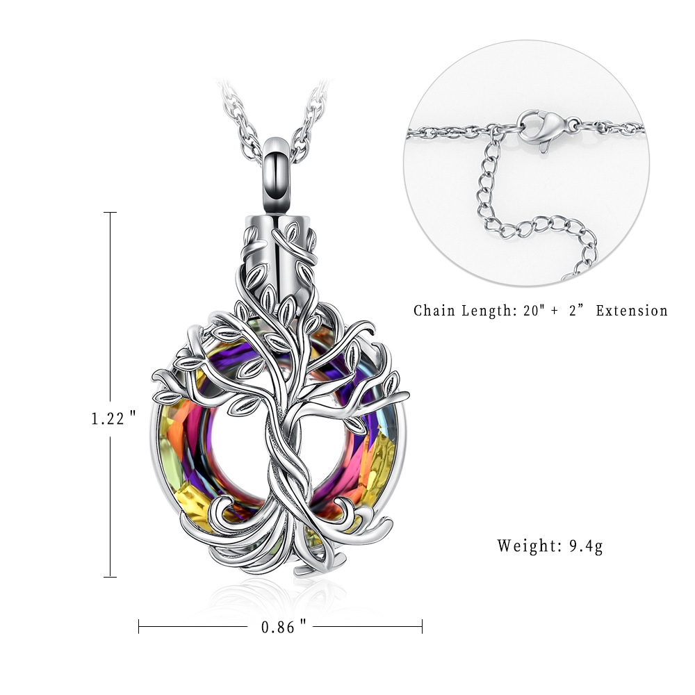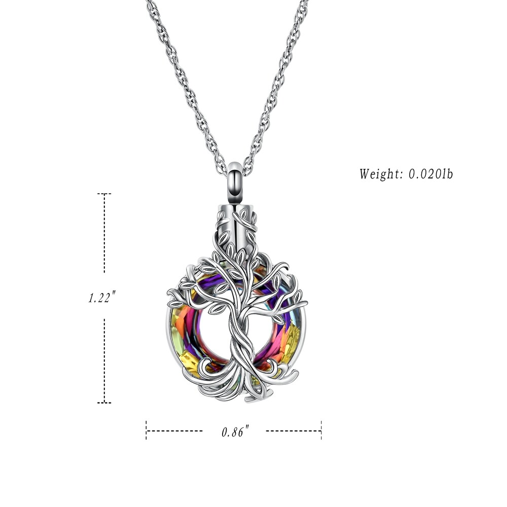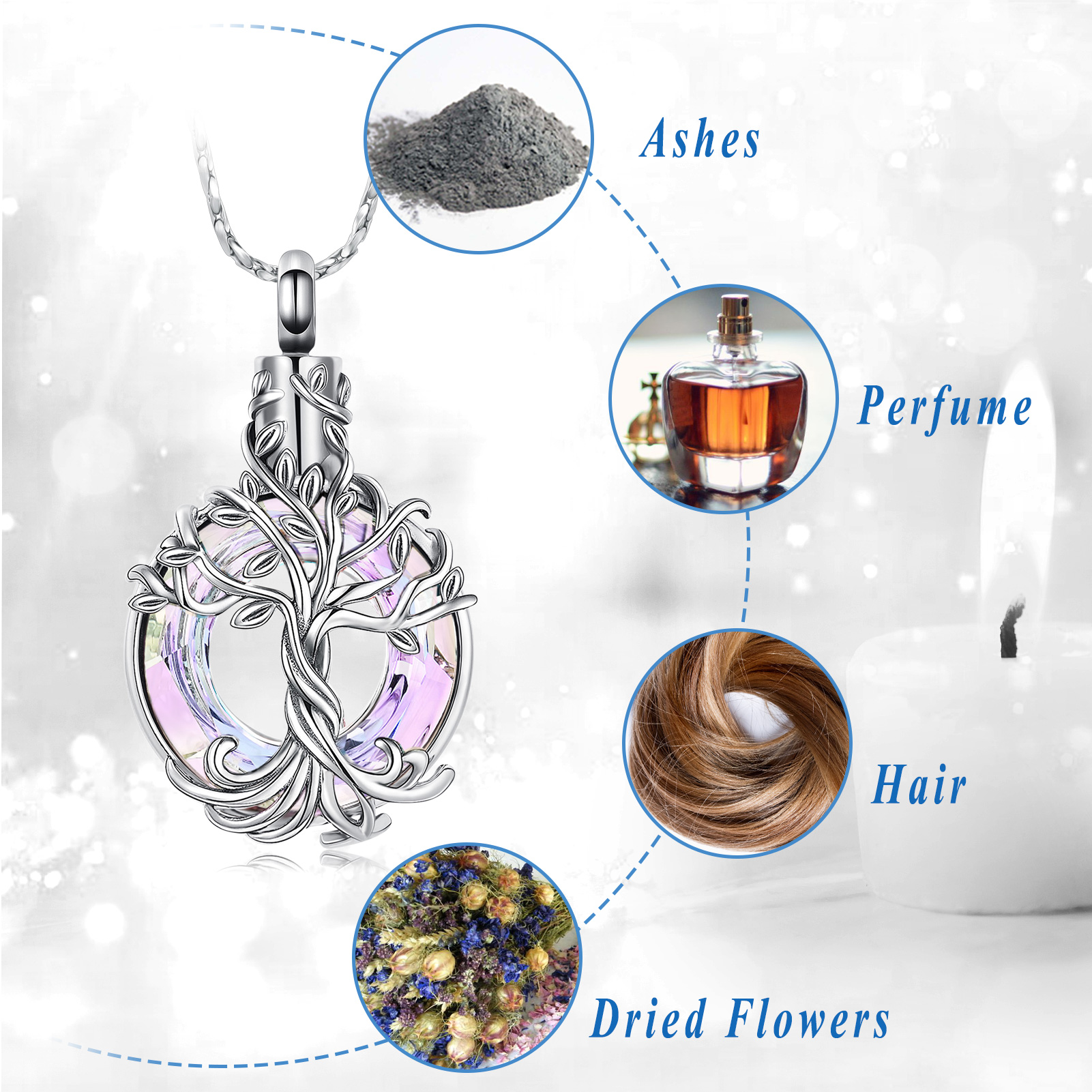 Tree of Life Cremation Urn Necklace with Crystal and Funnel Filler
