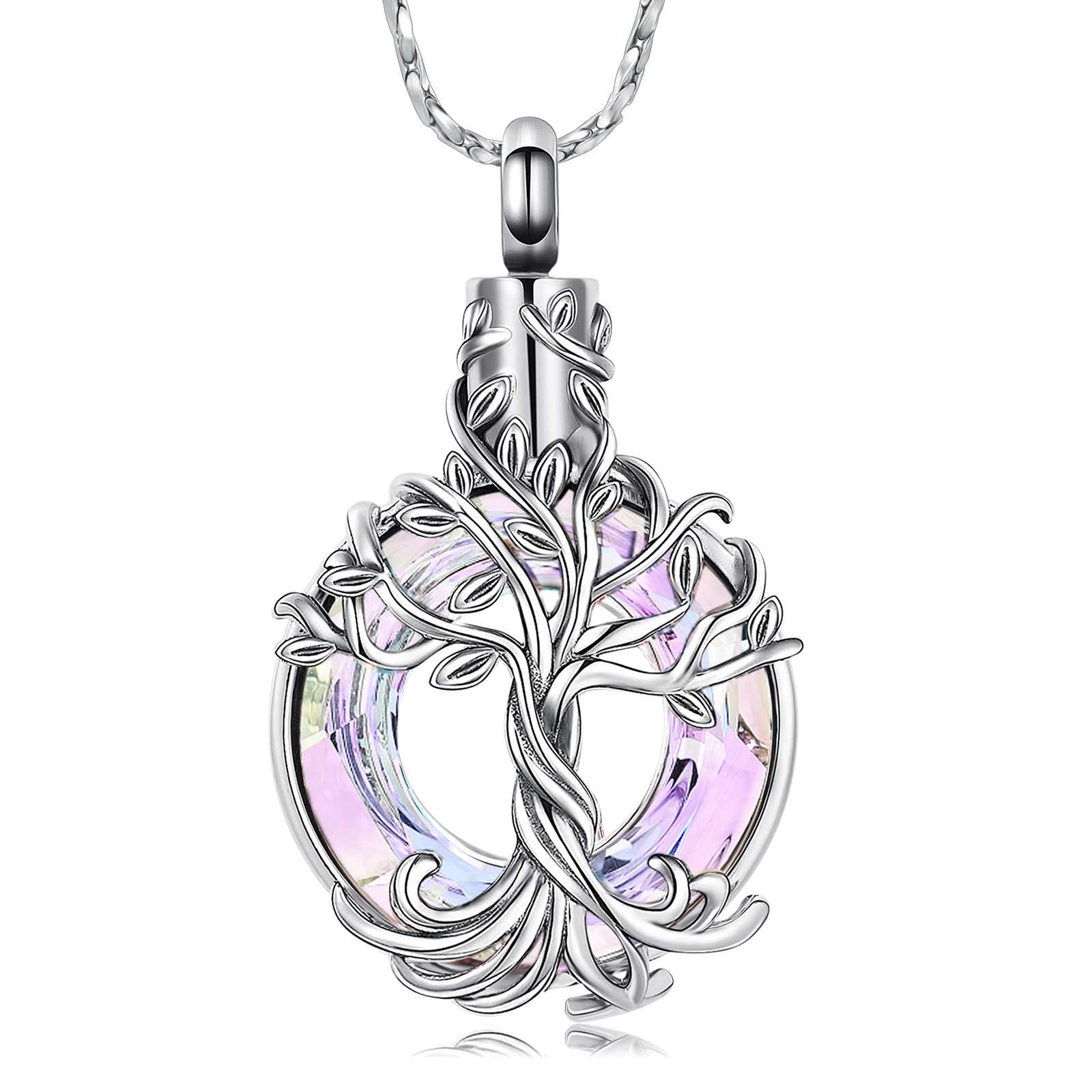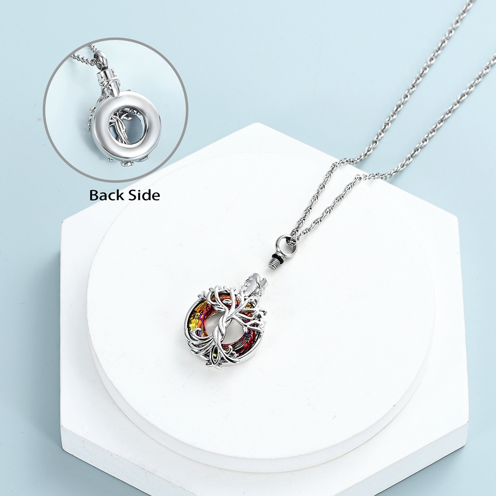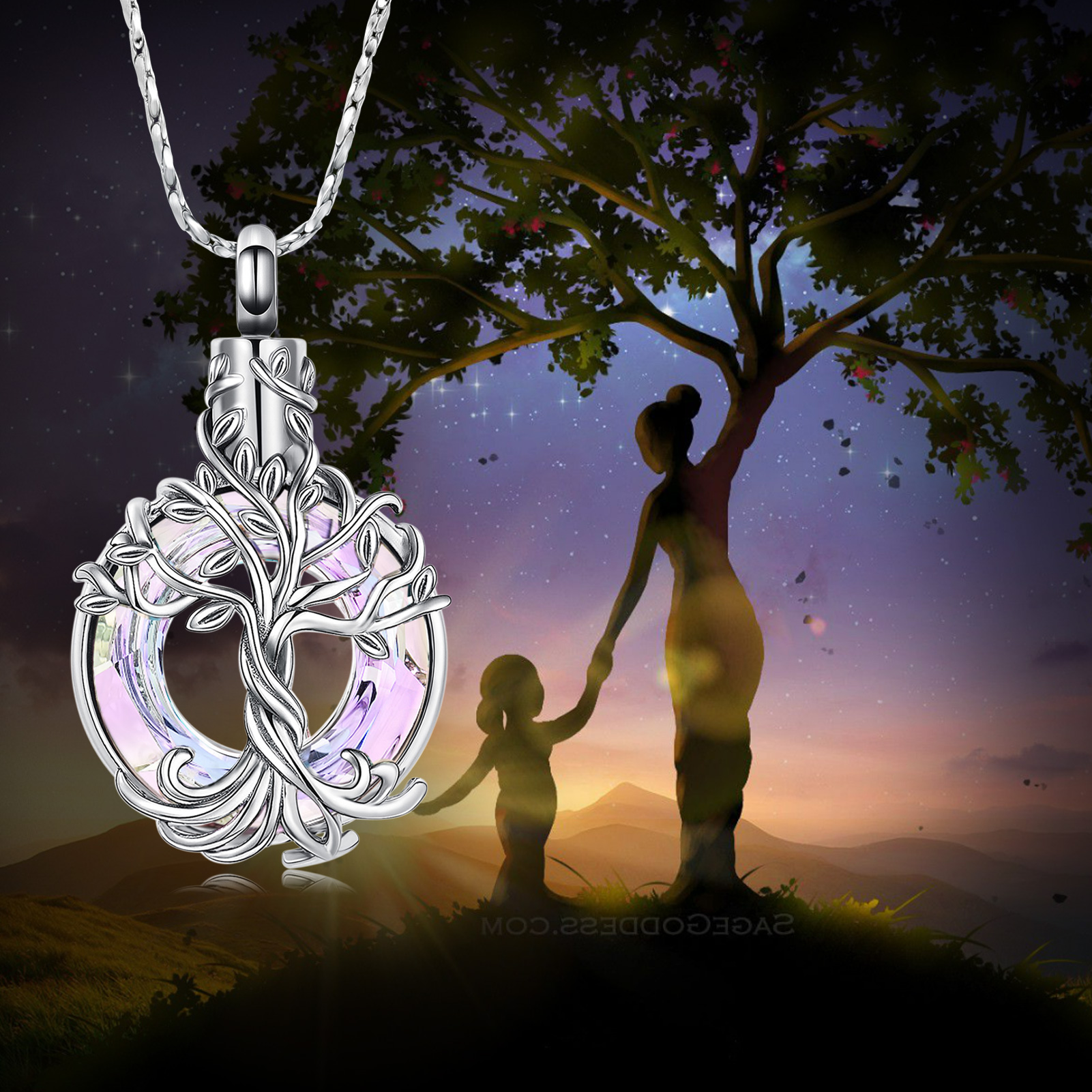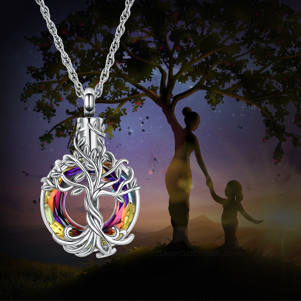 Tree of Life Cremation Urn Necklace with Crystal and Funnel Filler