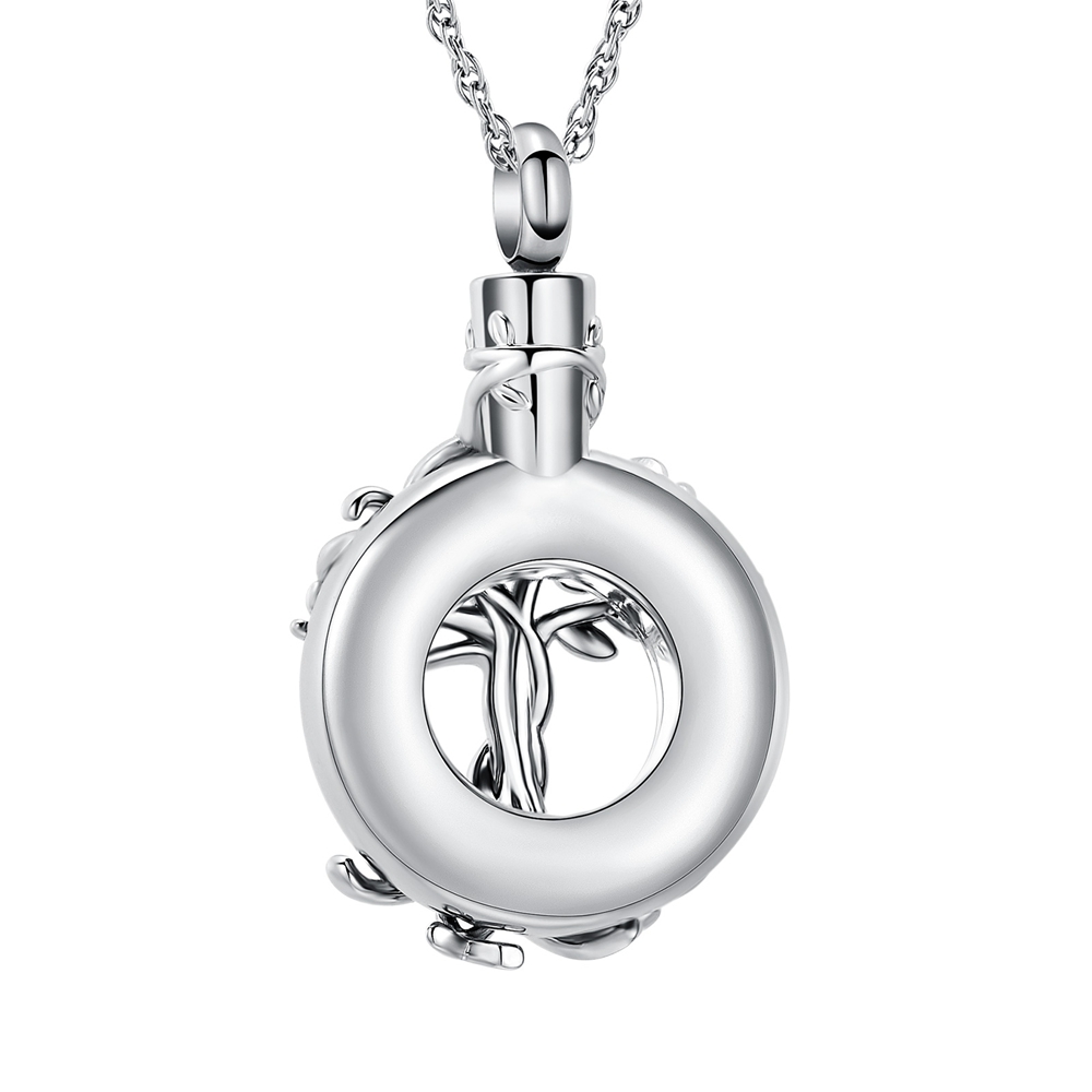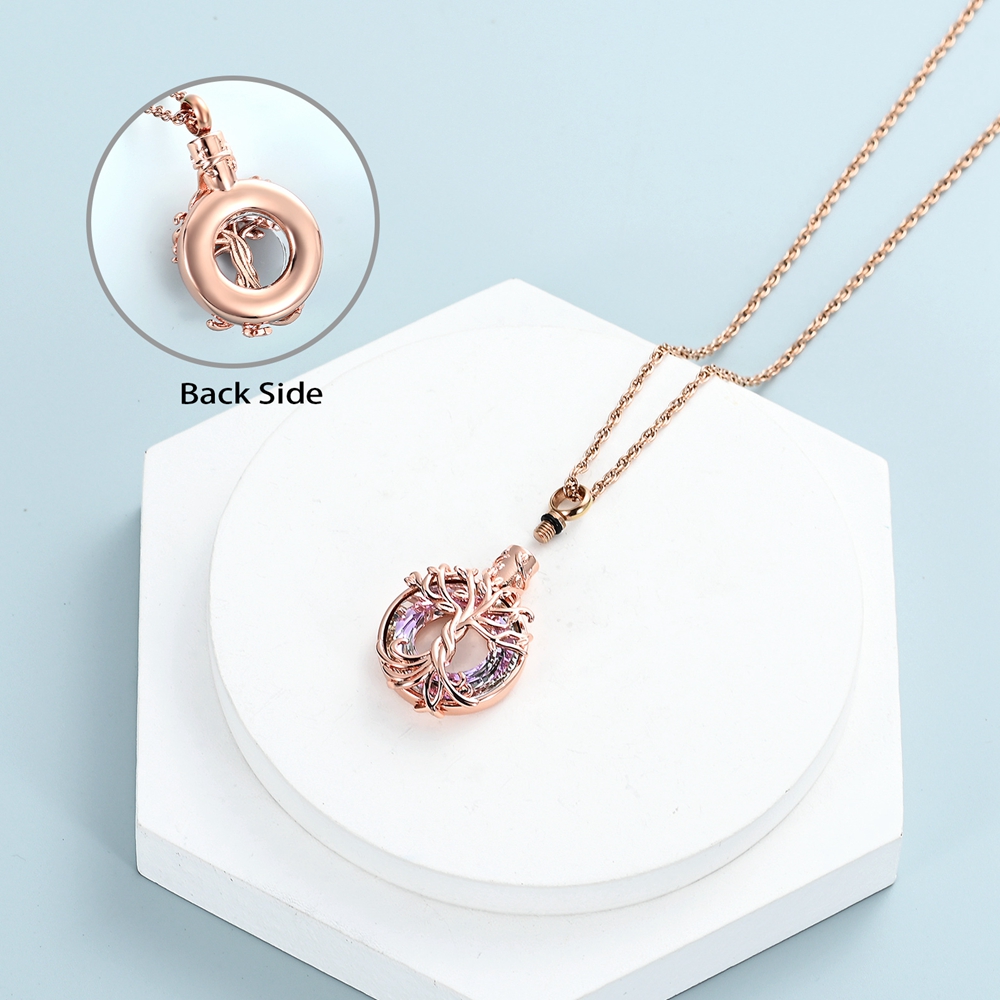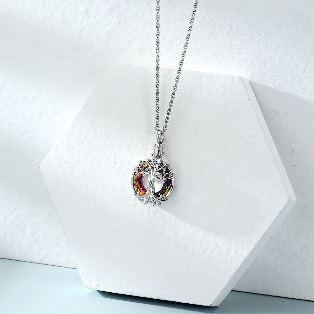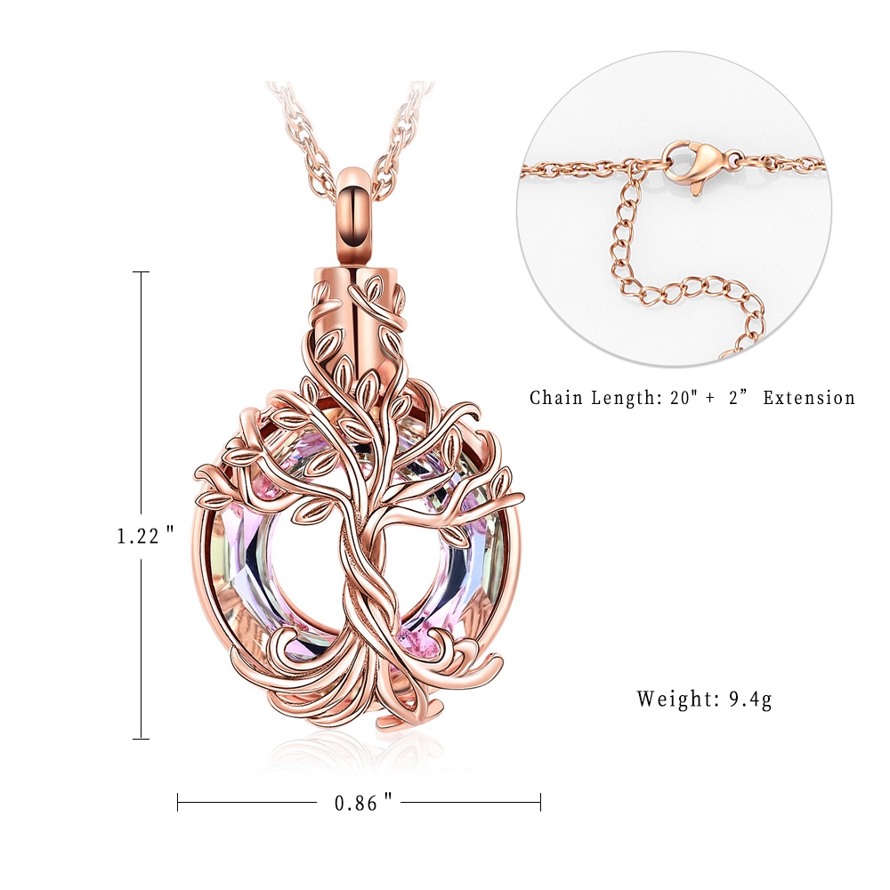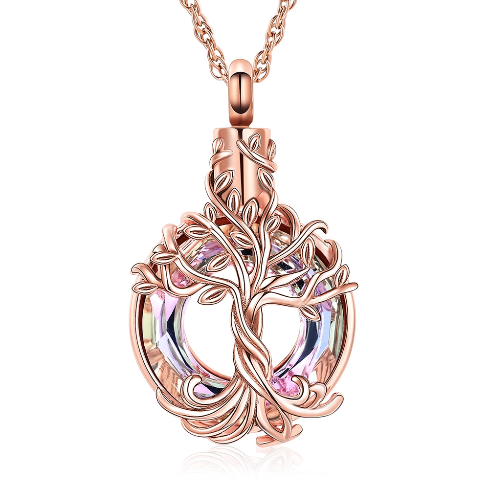 Tree of Life Cremation Urn Necklace with Crystal and Funnel Filler