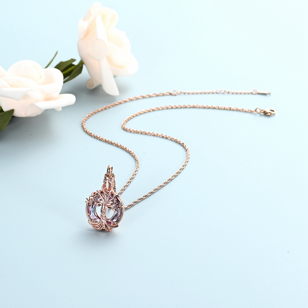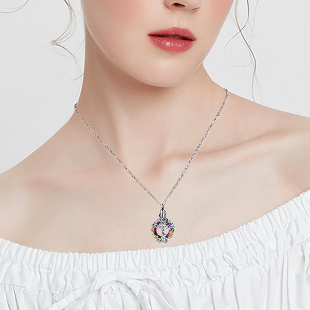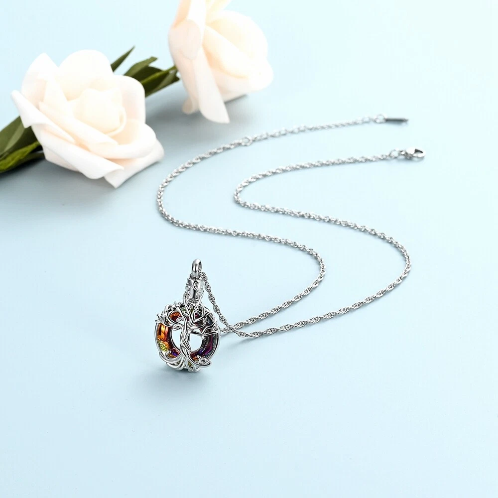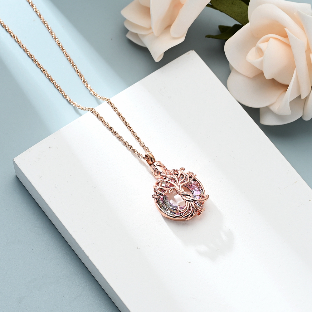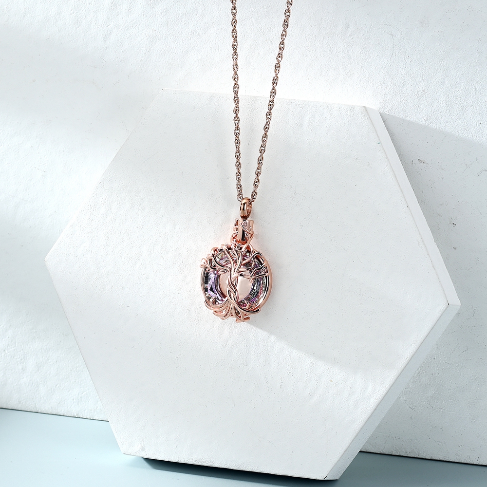 Tree of Life Cremation Urn Necklace with Crystal and Funnel Filler