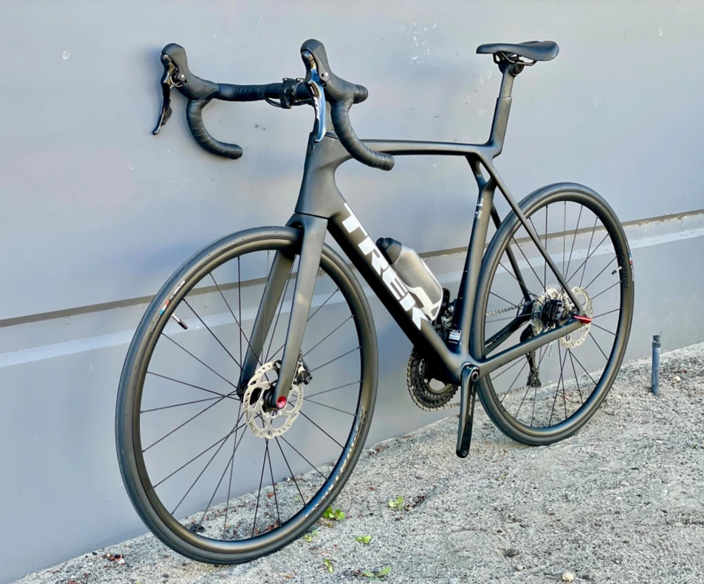 2025 Trek Madone SL5 Gen - 8 Size - 58 cm/ Large Carbon 500 OCLV road bike 12 speeds Shimano group set Shimano 172.5 cranks 50/34T chainring Bontrager Paradigm SL wheels (tubeless ready) Bontrager R1 28 tires 500 Series OCLV Carbon 100mm stem Bontrager bars Hydraulic brakes
