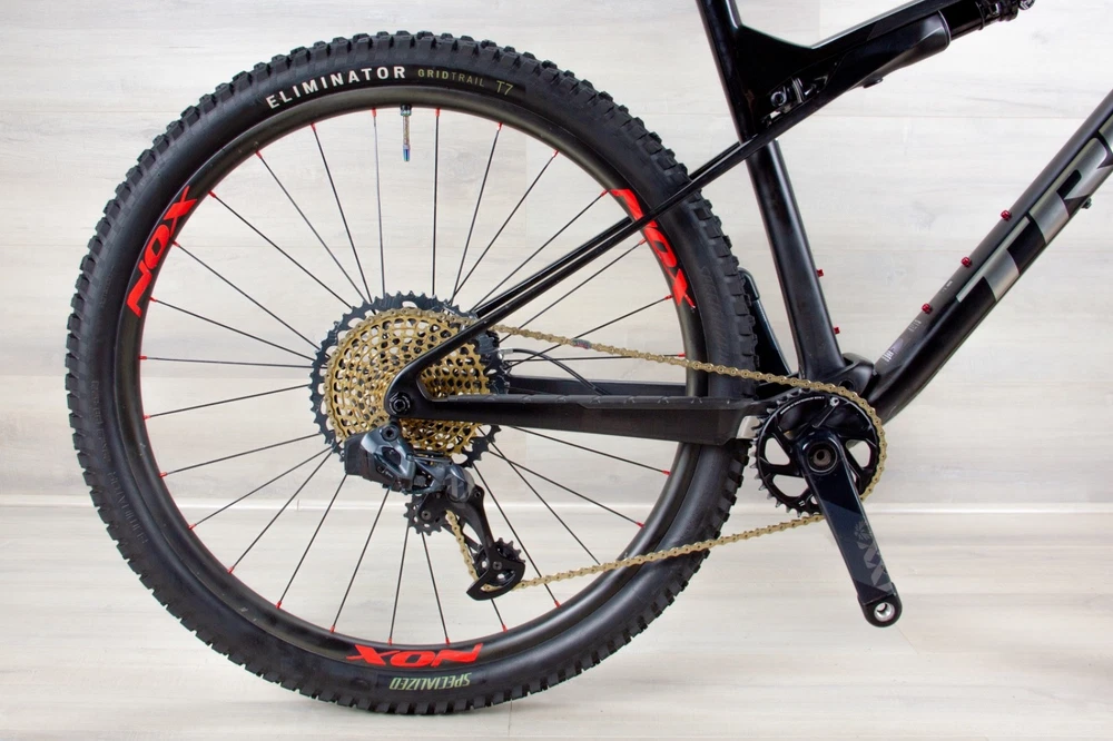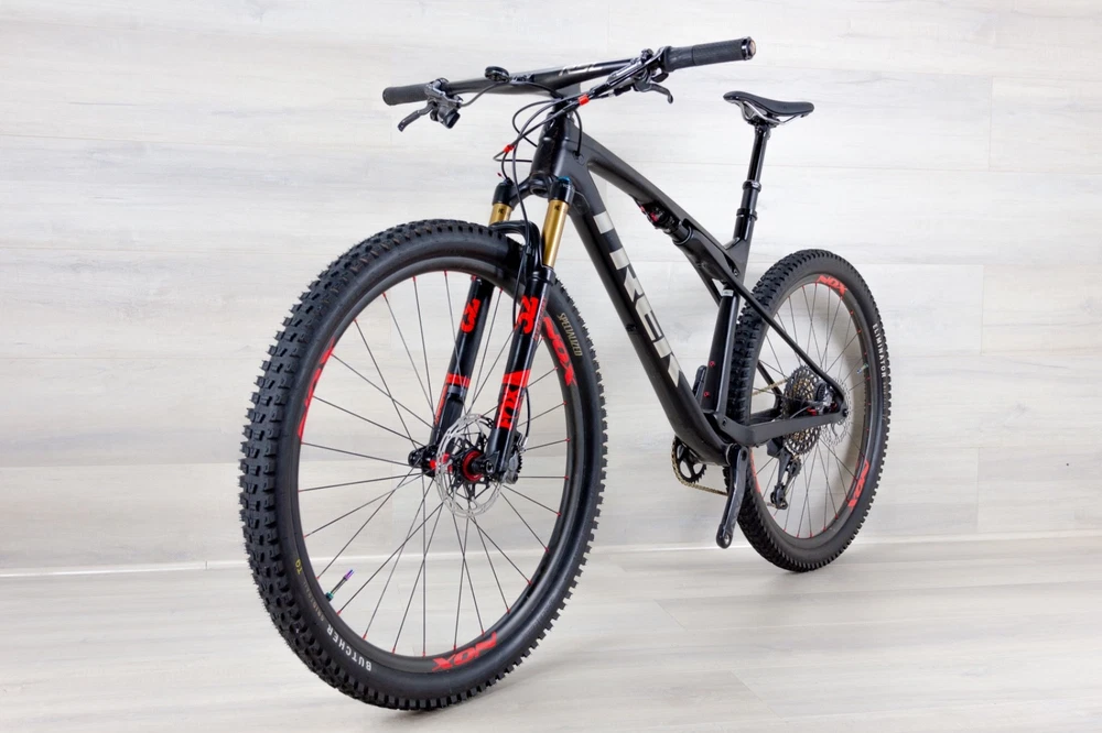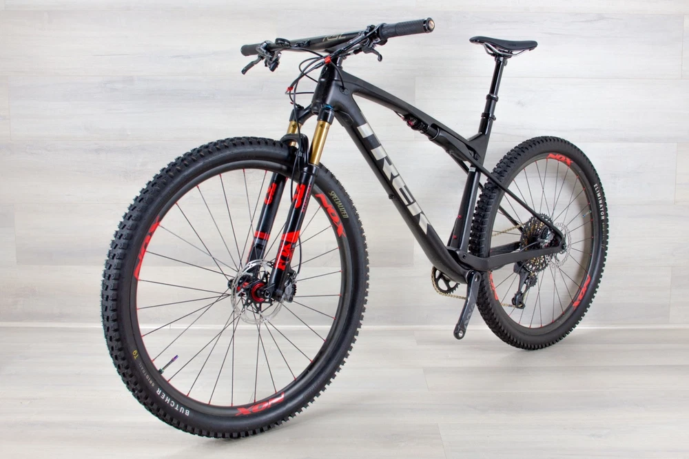 Trek Supercaliber 9.9 GEN 1 Sram XX1 AXS - X-Large •Material - carbon •Brakes - Shimano XTR hydraulic •Brand - Trek •Model - Supercaliber 9.9 XX1 •MSRP - 10499$ •Weight - 22.8lb •Cassette - SRAM Eagle Gold 10/52 •Chainrings - SRAM eagle 34T •Charger - yes •Components group - SRAM XX1 AXS 12sp •Crank - Sram XX1 175mm carbon •Drivetrain - 1x12 •Fit Range - 5.11 to 6.4 ( approx ) •Fork - Fox 32 Step-Cast Kashmia gold coat •Fork travel - 100mm •Front derailleur - •Miles - 1200-1500 ( approximately and depending on the frame condition and components ) •Rear derailleur - SRAM XX1 AXS 12 speeds •Rear shock travel - 60mm •Seat post - FOX dropper seat post •Stem - Bontrager 90mm -9 •Tires - Specialized Butcher 2.3 front and Eliminator 2.3 rear •Wheels, material - NOX carbon rims, DT Swiss 240s hubs •Tubeless compatibility - ubeless •Handlebars - Bontrager RSL one piece carbon •Saddle - WTB •Mechanic notes: Pre - Owned, good shape. The bike like any MTB that sees real trail time, there are some cosmetic marks from regular use (showed on pictures).