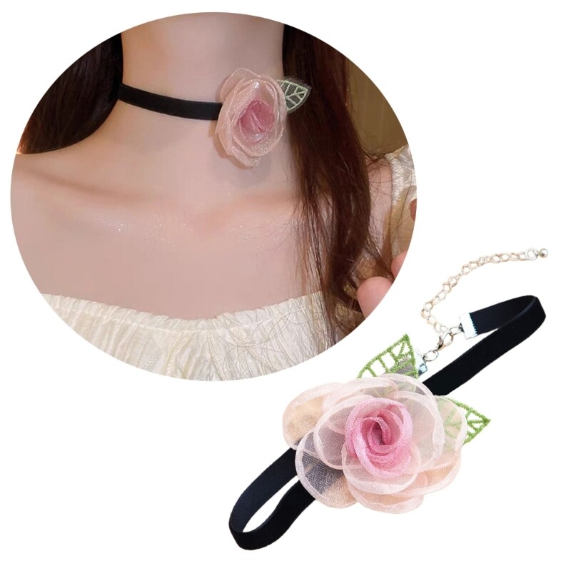 $ 4.79Camellia Flower Choker Necklace Beautiful Collar Chain Bride Wedding Party Gift