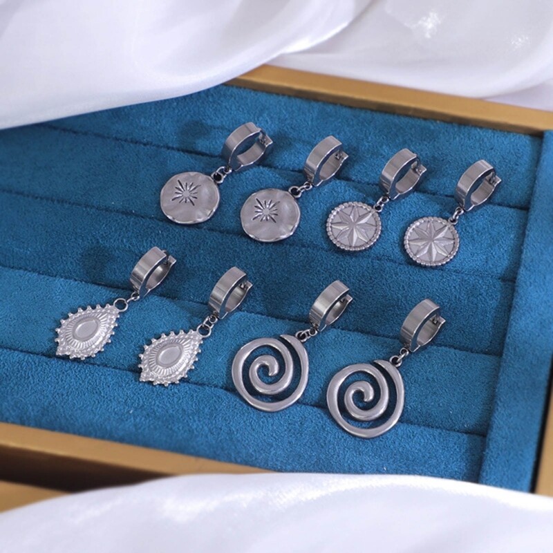 Features: Make a statement with these unique Punk Pendant Earrings. Featuring eye catching eight pointed star, they exude a of and fashion that sets you apart from the crowd. Crafted from high stainless steel, these earrings are durable, corrosion and won't fade over time. The matte finish adds a touch of sophistication and reduces visible scratches. Suitable for both men and women, these earrings are designed for individuals who appreciate edgy and personalized fashion. A great choice for those with a unique taste. for parties, music festivals, or performances, these earrings add a trendy touch to your look, allowing you to showcase your individuality and fashion Not just limited to special occasions, these earrings can also be worn daily to add a unique touch to your Express your fashion and make a statement with these accessories. Specifications: Steel Type:Sun God/Eight Pointed Star Wire (Optional) Size:As Shown in the Picture Package Includes: 1Pair Punk Pendant Earrings note: Please allow 1-2cm error due to manual measurement. Please make sure you do not mind before you bid. Due to the difference between different monitors, the picture may not reflect the actual color of the item. Thanks!
