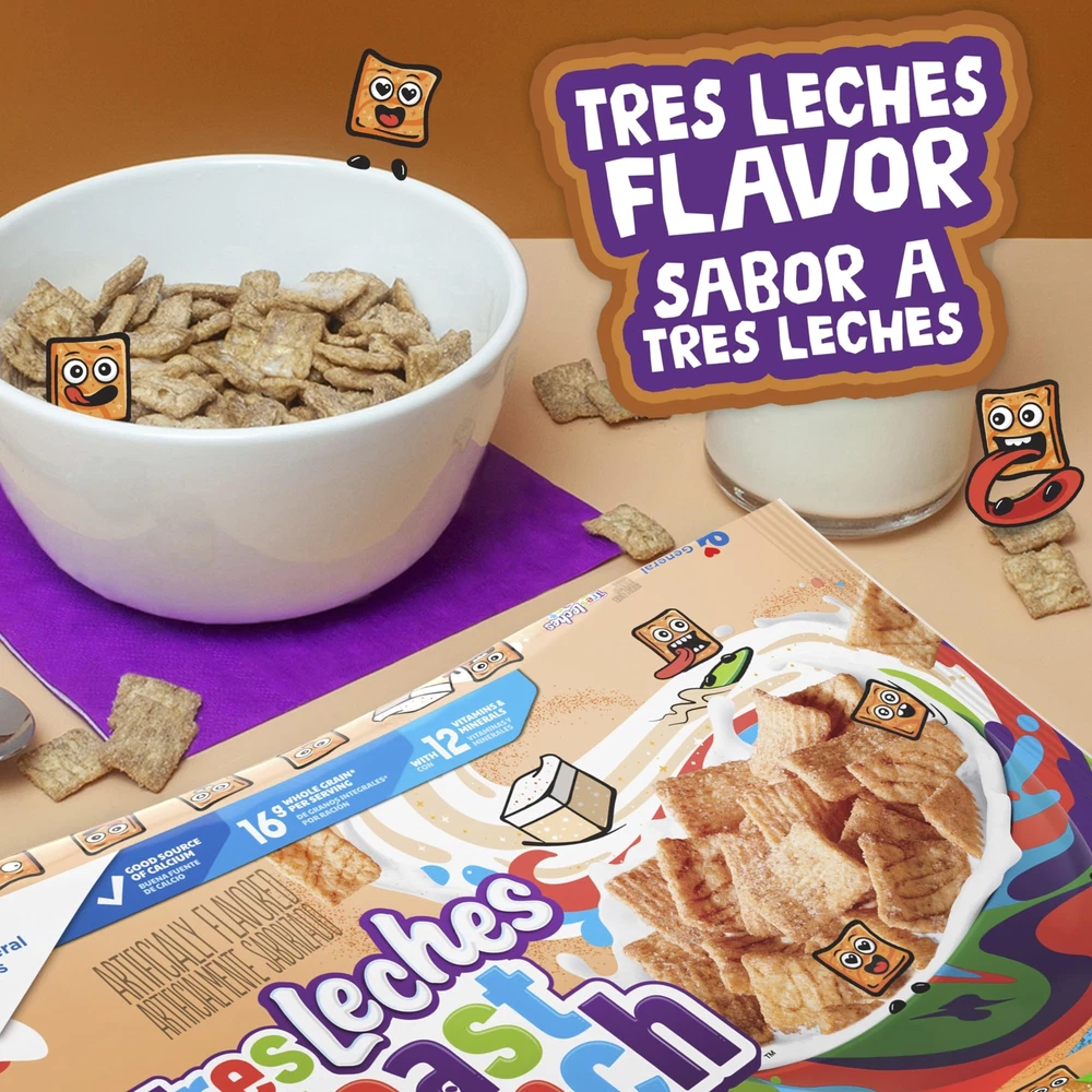 Tres Leches Toast Crunch Breakfast Cereal, Crispy Artificially Tres Leches Flavored Cinnamon Cereal, 32 oz Description Get off to an epic start with General Mills Tres Leches Toast Crunch cereal, inspired by the sweet and creamy dessert. Every crispy square is bursting with artificial Tres Leches flavor and blasted with CINNADUST, the mix of real cinnamon and sugar that makes your mouth happy. Enjoy artificially Tres Leches flavored sweetened whole wheat and rice cereal as a ready to eat breakfast food. Simply pour a bowl with milk and dig in to that satisfying crunch. Then slurp up the CINNAMILK, the sweet and awesomely tasty cereal milk at the bottom of your bowl. Tres Leches Toast Crunch breakfast cereal is made with 16g whole grain per serving (at least 48g recommended daily) and 12 vitamins and minerals, and is a good source of calcium. Make it a part of a quick and easy breakfast for teens, kids, and the entire family. Pack some in snack bags and enjoy this tasty cereal on the go. Add it to snack mix or cereal bars recipes for times with friends. Keep this bagged cereal in your pantry for mornings, and one to use as a crispy topping for pudding, cake, ice cream, and more. However you enjoy this crunchy Tres Leches cinnamon cereal, General Mills breakfast cereals are always ready to spread goodness from tots to grow- ups. Features: TRES LECHES FLAVOR: Crispy cereal squares combine the taste of cinnamon sugar and mouthwatering Tres Leches for dessert inspired deliciousness in every bowl WHOLE GRAIN BREAKFAST: Each serving provides 16g whole grain (at least 48g recommended daily), 12 vitamins and minerals, and a good source of calcium QUICK BREAKFAST OR SNACK: Try it with or without milk for mornings, or serve it as easy teen or kids snacks that spark smiles every time SWEET TREATS: Tres Leches cinnamon cereal makes a delicious addition to homemade cereal bars, party snacks, ice cream toppings, and more CONTAINS one 32 oz cereal bag of Tres Leches Toast Crunch Cereal Product Details: Brand: Cinnamon Toast Crunch Flavor: Tres Leches Age Range (Description): All Specialty: Whole Grain Unit Count: 32.0 Ounce Product Dimensions : 10.6 x 19 x 4 inches; 2 Pounds UPC : Manufacturer : GENERAL MILLS SALES INC. Country of Origin : USA Handling We will ship all orders within 3 business days of payment. Delivery We do not ship outside of the Continental US. Feedback We take our reputation seriously, we buy and sell online, so we understand the value of trust. If you are unsatisfied with your order, please contact us and we will work with you to resolve it to your satisfaction.