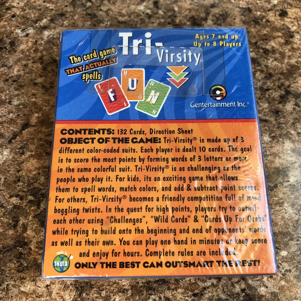 HomeTriVirsity Card Game New Sealed 1999 Fast Playing Word Building Rummy Style Fun