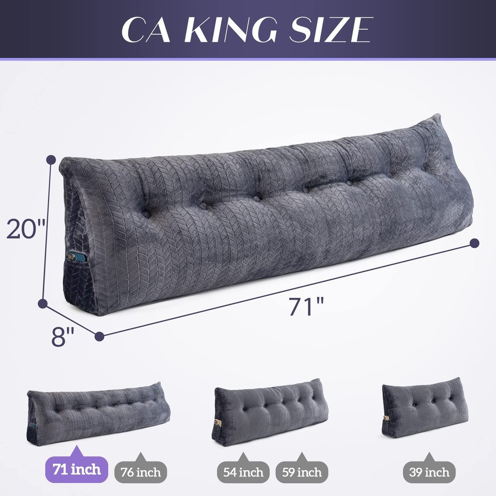 headboard pillow ALL KINDS OF SIZES: With different sizes to match various occassions. This large headboard pillows provides excellent back,lumber and neck support while sitting up in bed, reading, watching TV,browsing phone, surfing tablet, playing video games and so on. The large headboard backrest support pillow fits perfectly to your mattress. BEST QUALITY YOU CAN TRUST: The wedge headboard pillow is made of premium 3D quality velvet fabric – the plush texture of this velvet fabric creates a rich and luxurious feel while still providing comfort, softness, and support. NOT JUST A PILLLOW: with multipurposes and various occasions. Our large triangular pillow has all kinds of sizes for regular beds. Best used as a bed headboard for maximum comfort when working, sitting and playing on be d. Use it for beds, day beds, sofas,couches, floors or kids play rooms which refreshes your home and decor. MAXIMUM COMFORT: Ergonomically designed for maximum comfort! Felt upright sore back and pain on your shoulders and back? Our backrest positioning support pillows solves your problem. The headboard cushion is soft while still supportive enough, thus helps to release sore backs and orthopedic pains. EASY TO MAINTAIN AND WASH: Just remove the bed rest bloster pillow cover by opening the zipper and unlooping the buttons from the reading pillow cover when you need to get it machine washed.