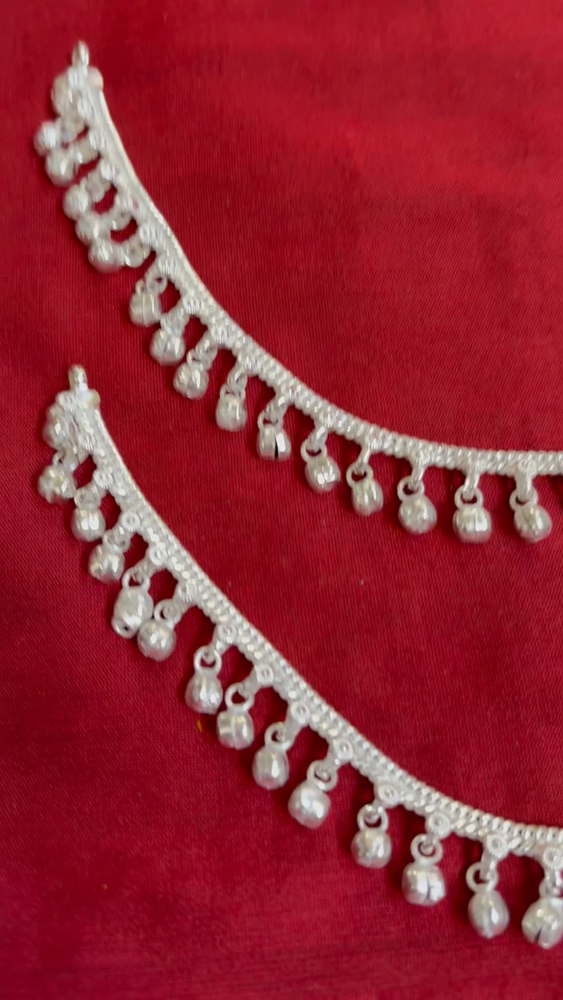 Metal: : Silver plated Finish Material:total l 10" Twist one end of the S Hook clasp to open it. Slide the S Hook in the eye at the other end of the anklet. Press firmly to close it Indian silver jhanjar payal anklet pair studded with white stones. Bells in S Hook only. Fits and sits like a curve on the ankles as shown. Comes as a set of 2 anklets ANY OCCASION - Great for Bridal Wedding, Party, Dances, Beach and Gifts | Meticulously Curated and Checked in USA | Handcrafted by artisans in India Style Tip: Perfect for spring and summer wear. Compliments most outfits. Casual chic everyday wear | Jewelry Care: Can be used in water but dry completely before storing Ethnic Significance: Also known as "Payal" :Jhanjar” “Paizeb” in India, brides wear it to draw attention to and decorate their feet. Bells or chimes make a soft jingle sound when the bride walks. Traditionally payals are worn in both feet. However ankle bracelets can be worn in one foot. Today they also come in Retro, Contemporary, Bohemian, Tribal styles