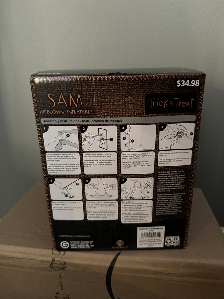 Gemmy Trick R Treat Movie Sam & Sack Halloween Light Up Airblown Inflatable 5'. Condition is New. Shipped with USPS Ground Advantage.