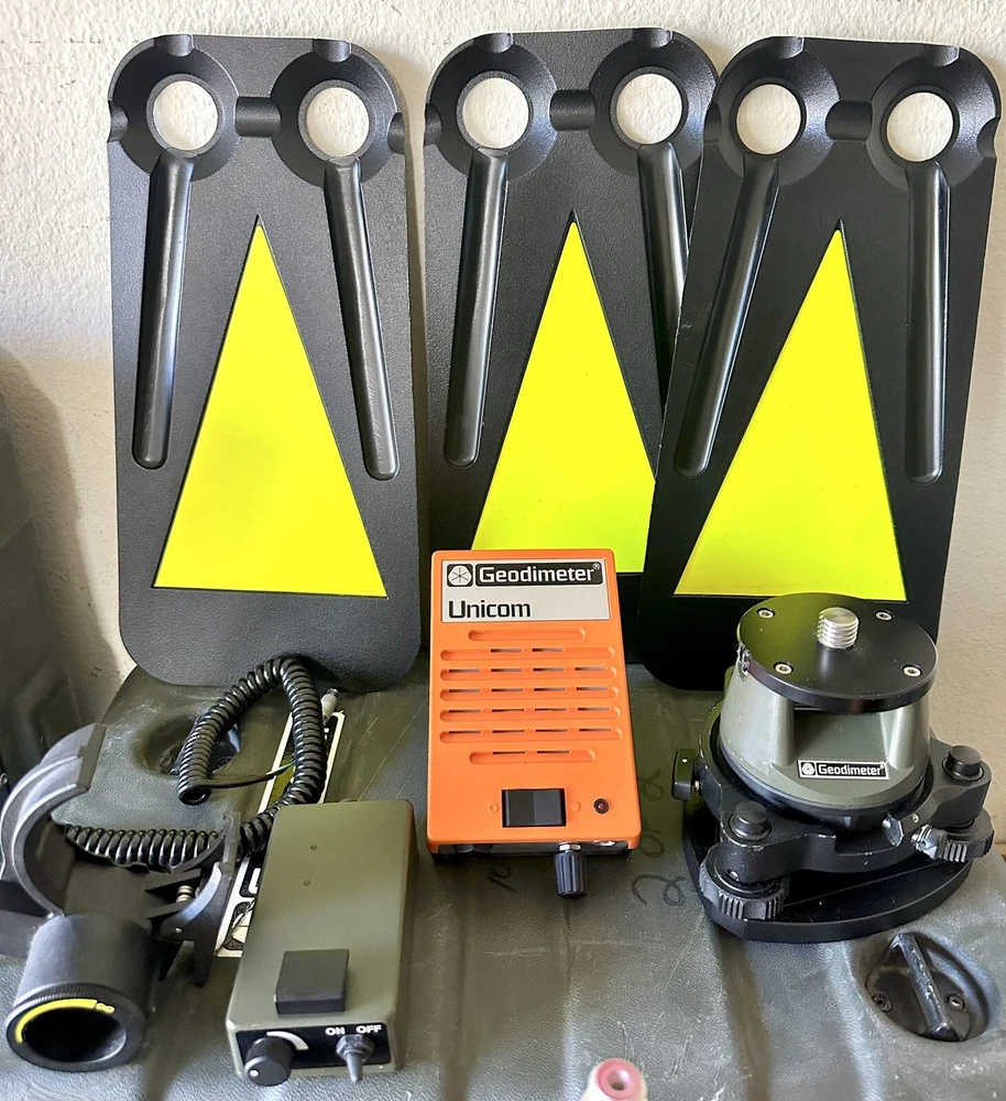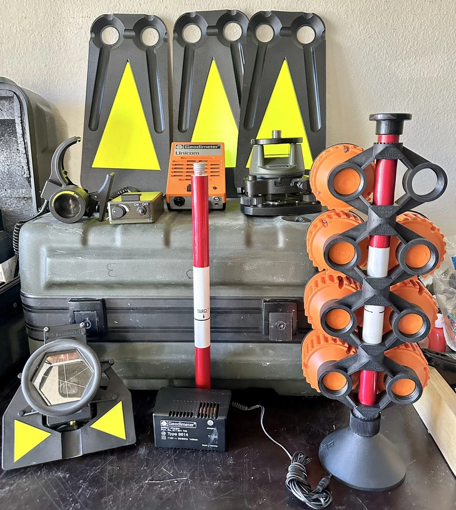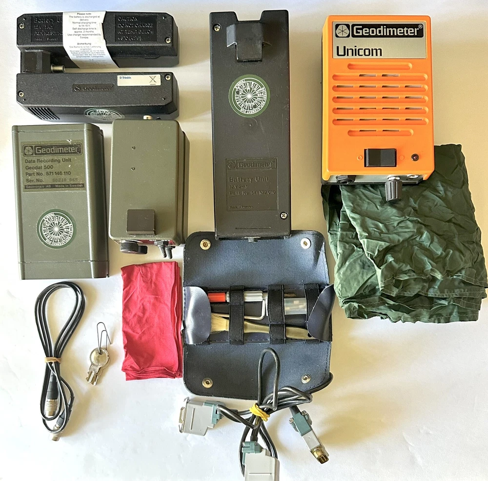 Trimble Geodimeter Unicom 640 Automated Integrated Survey Total Station Instrument Pre-owned in great condition with minimal wear. It comes with total station, data recording unit, unicom, keys, cover, PC interface, battery charger, reflector constant, reflector base, battery unit, repair tools & hard carrying case. Please refer to the pictures & video. What you see is what you get.