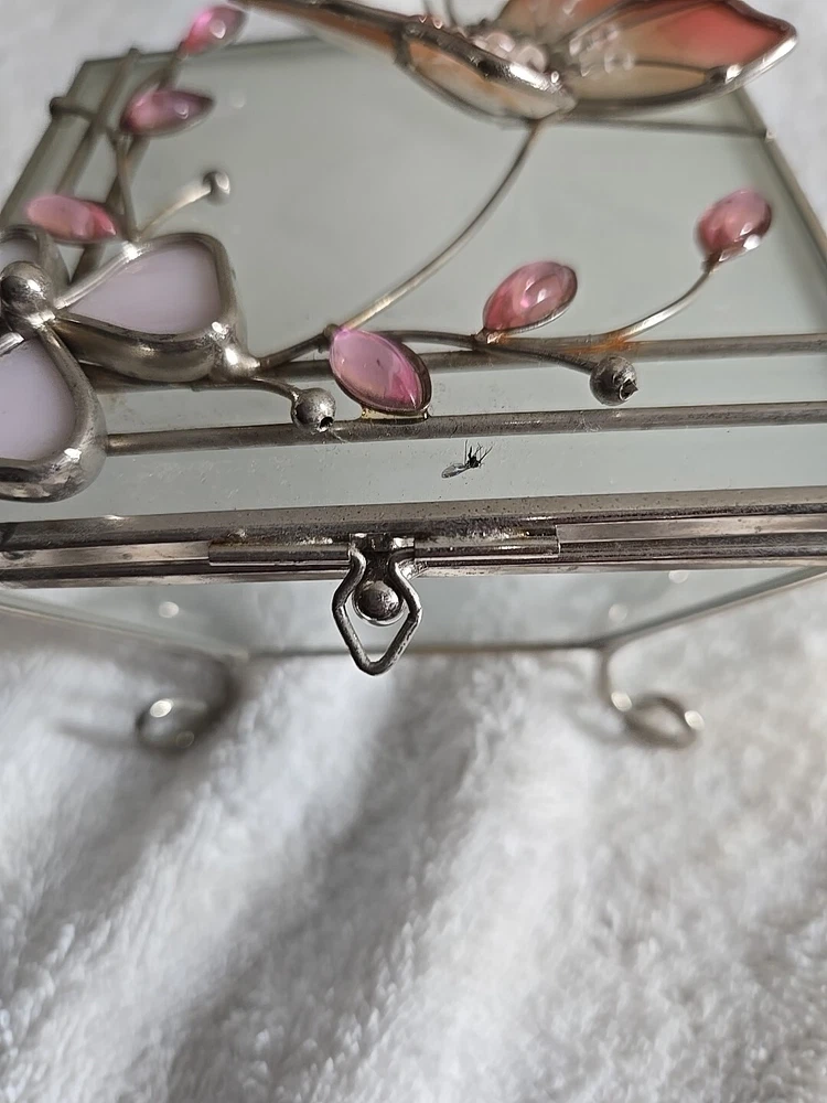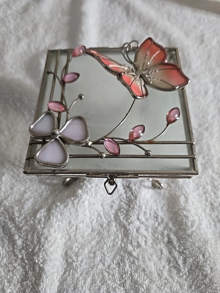 This beautiful trinket box is the perfect gift for a daughter. It features a lovely pink color with flowers and butterflies, making it a great addition to any collection. The box is made of high-quality resin. The pattern on the box is intricate and eye-catching, adding to its charm. The trinket box is perfect for storing small treasures or keepsakes, and its size is compact enough to fit on any shelf or dresser. The box is also a great way to show appreciation to a daughter, making it a thoughtful and meaningful gift. With its beautiful design and high-quality construction, this trinket box is sure to be cherished for years to come.