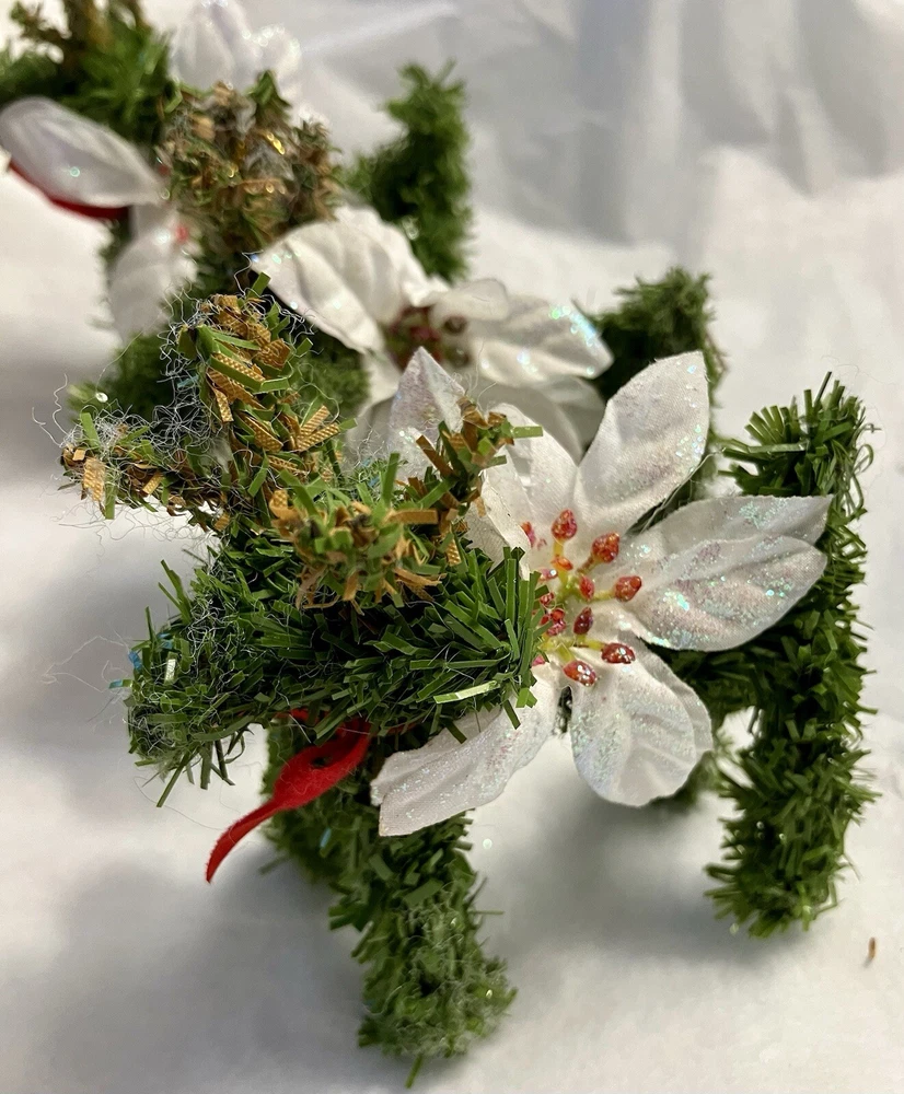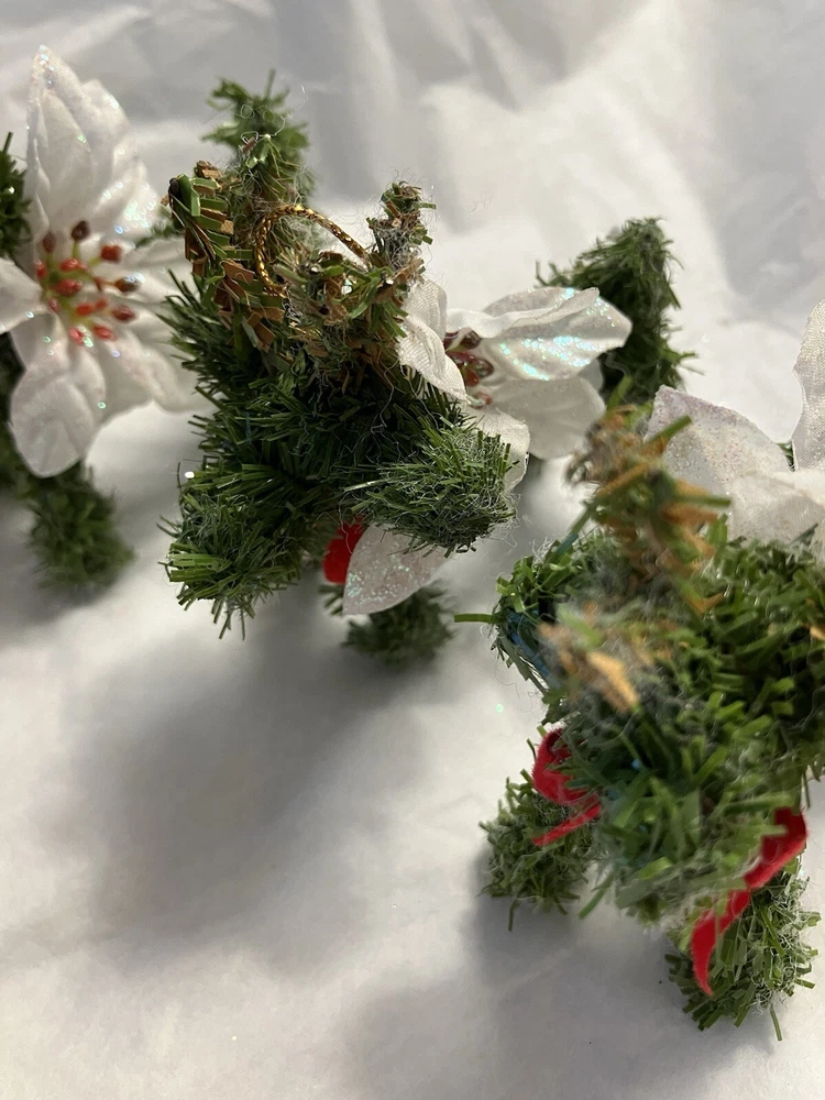 Trio of Christmas Reindeer Decoration/Ornaments 3" x 2.5" Hard to take a good picture of these, they're just cute. Some of the white fuzzies are from another ornament, I'll defuzz when I ship.